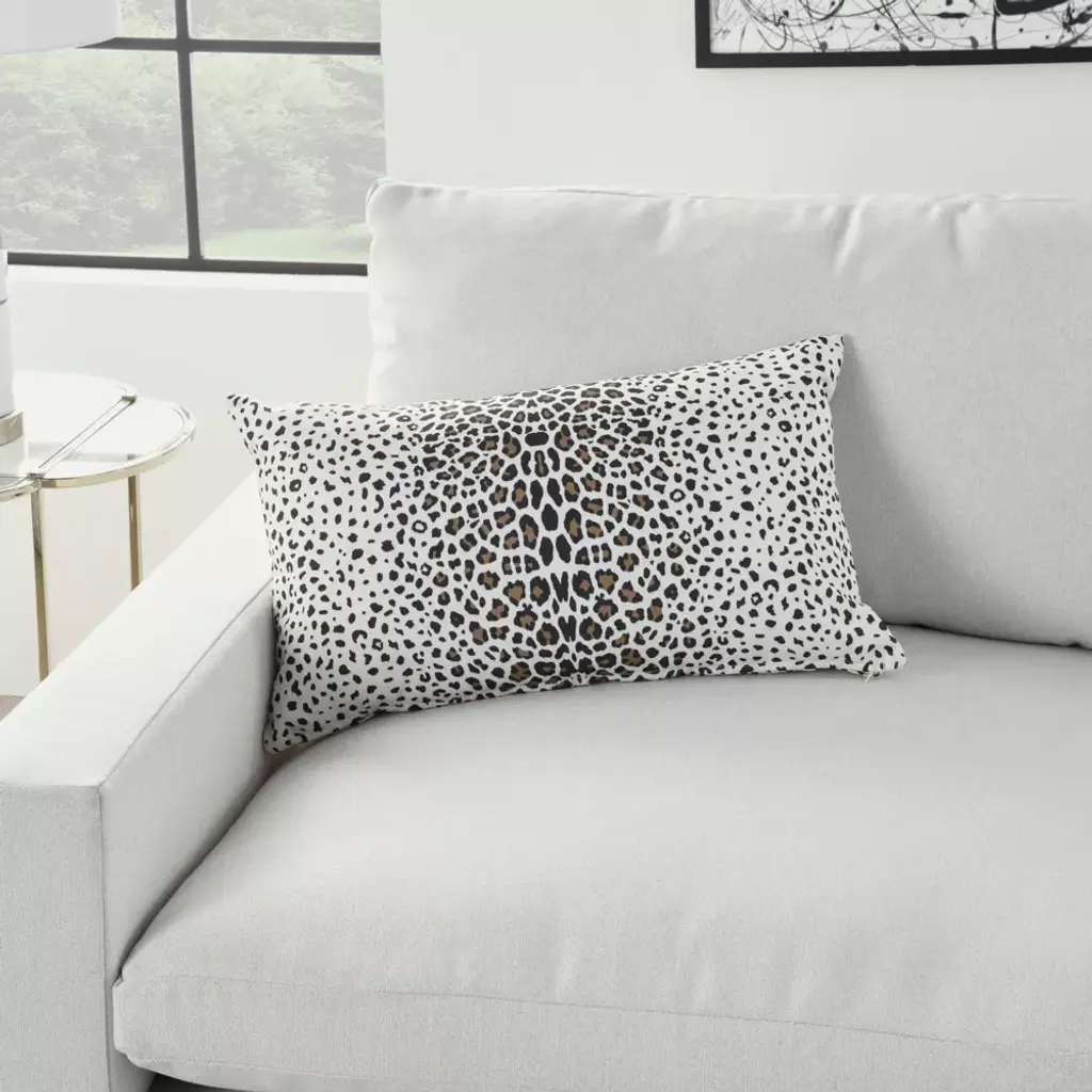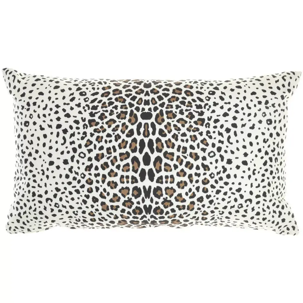 Channel exotic flair with this super stylish indoor/outdoor pillow from Mina Victory Home Accents. Handmade with a fashionable leopard print on a neutral base that reverses to a lively dot pattern on back. Spot cleanable polyester cover has zipper closure and polyester fill. 14”x 24” rectangle.