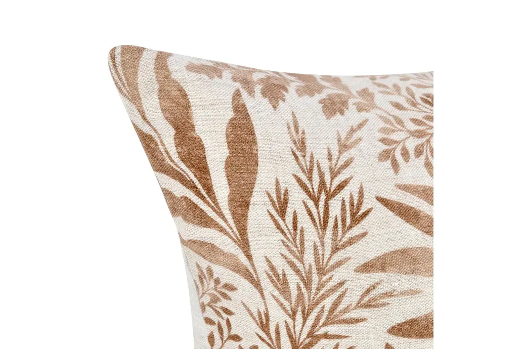 14x26 Brown Distressed Natural Linen Foliage Print Lumbar Throw Pillow | Machine Washable | Rectangle