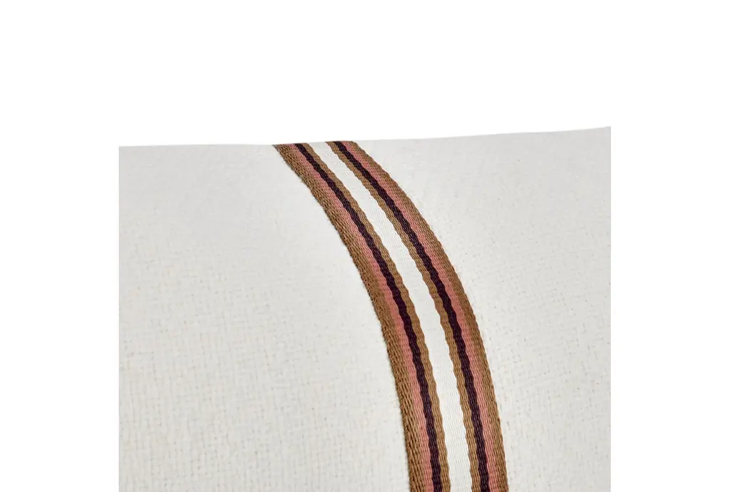 Enhance your home decor with this 14x26 natural cotton ivory white and red stripe tape lumbar throw pillow. The modern design and soft, neutral colors make it a timeless addition to any room. The ivory and red stripe adds a touch of classic style to your space.