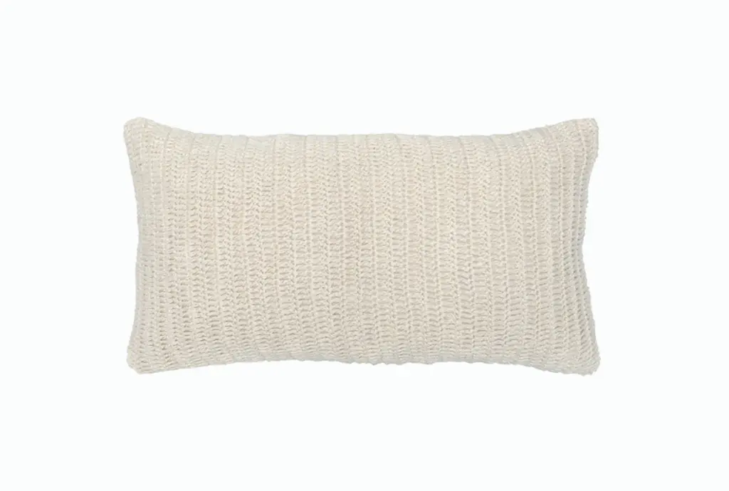 16"x36" Ivory White Textured Patched Wool Lumbar Throw Pillow | Indoor | Rectangle