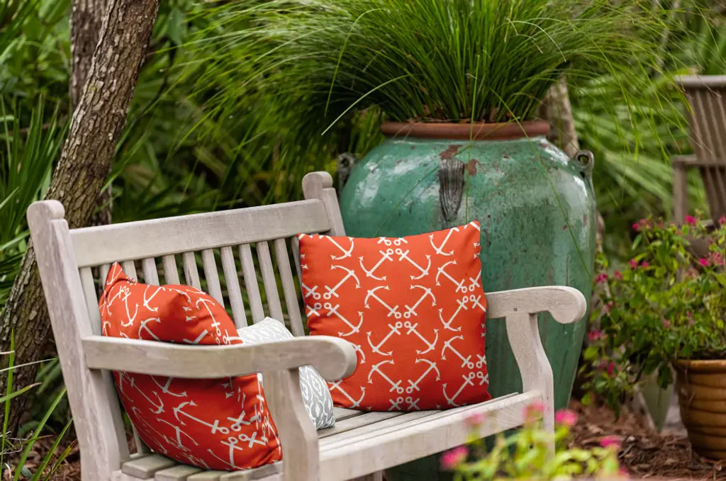 18" X 18" Anchors Up Decorative Indoor/outdoor Pillow, Bright Orange