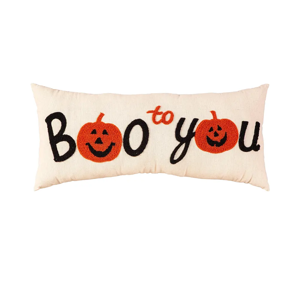 Fashion and function with an adorable Halloween-themed design? This lumbar pillow has it all. It features a “Boo to you” message with two Jack o’ lanterns. Lumbar pillows help reduce stress by bracing the lower back and provide pain relief by supporting the spines natural curvature. Set this pillow on a couch or chair to bring a spooktacular touch to any room.