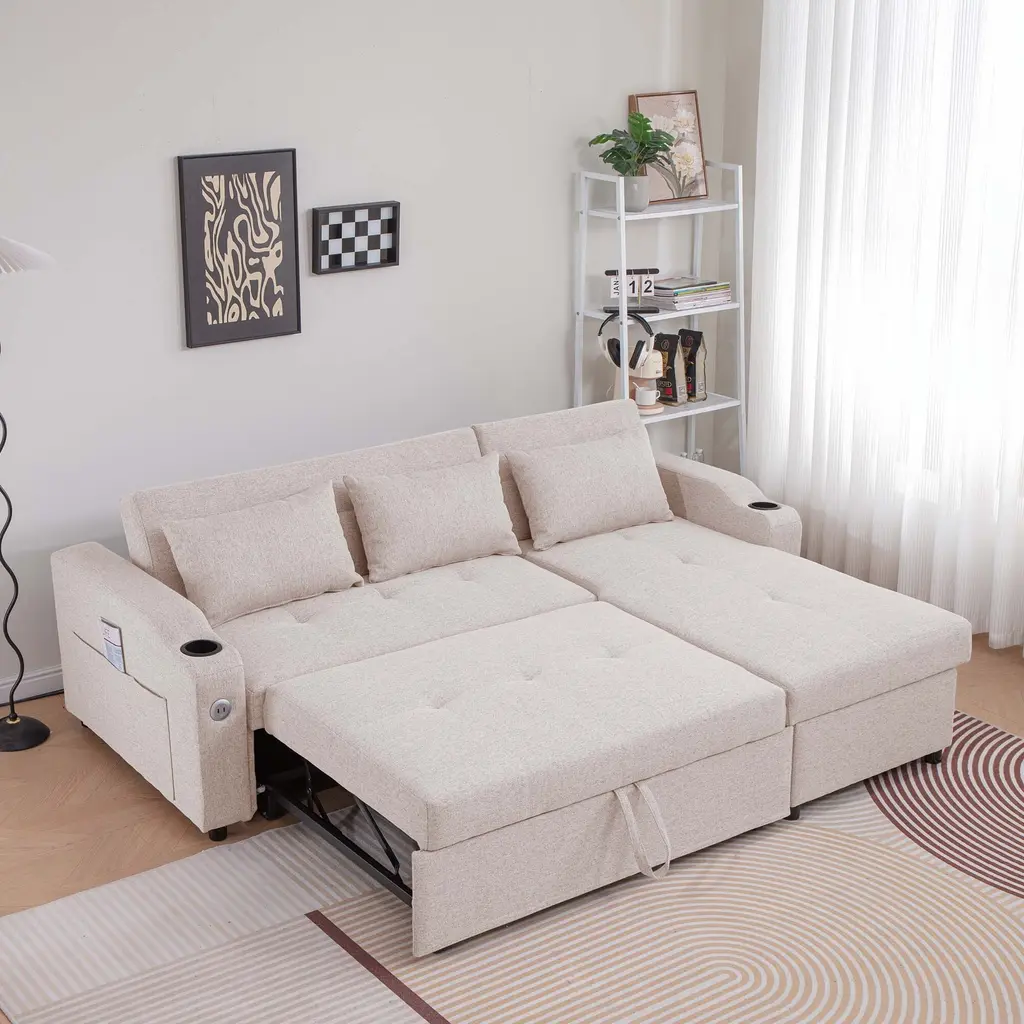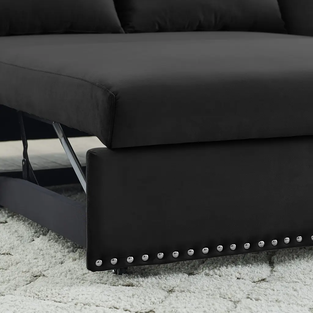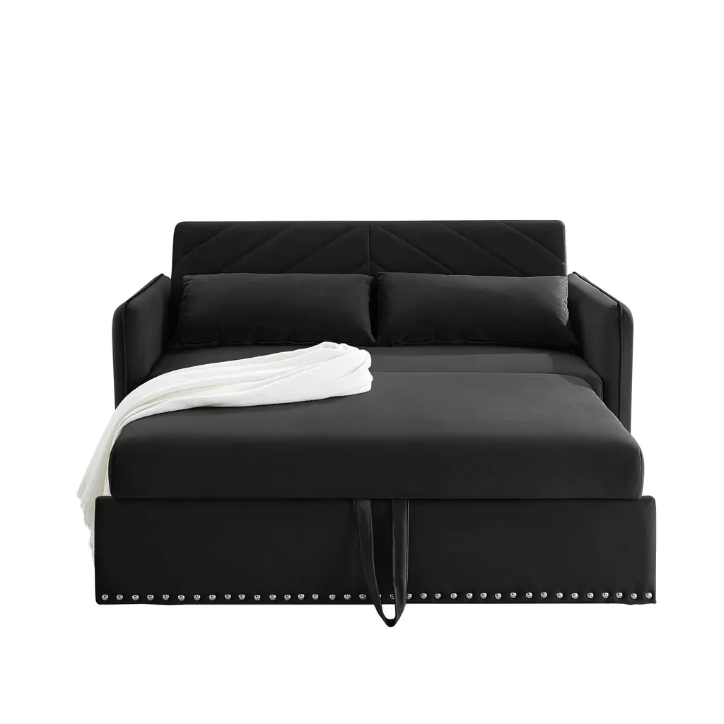 Product Description: Stretch out and relax on this handsome sofa. This velvet sofa bed features iron frame hinges and a sturdy wood frame so it will last a long time. Its vibrant velvet upholstery is a jewel tone that is simply stunning and adds a splash of color to your life. The sofa's back cushions are plump and padded with quality materials to keep you rocking in comfort, and it comes with two rolling pillows to help you prop up and relax. Selling Points: 1. Multi-position adjustable pull-out sofa bed with bedhead, By pulling out the bed frame under the seat, this double position sofa can be quickly converted into a bed for resting use. 2. Adjustable and super strong: soft high-grain velvet fabric and high-density foam, it can be used for listening, playing games, reading, and sleeping. It will make you feel relaxed and comfortable. 3. Suitable for any scene: this multifunctional pull-out sofa bed can be placed in living room and bedroom, it can accommodate 2 people to watch TV, play games or read, it can be used for guests or children's bed, modern design and space saving. This is definitely a good choice for applicable small rooms, apartments, studios, offices. 4. Perfect function: pull out the bed frame can quickly turn the sofa into a bed. Pull-out with a bed made of high quality foam and metal iron frame can steadily support you to lie on the bed. 5. Removable storage pockets and soft pillows. Our sofa comes with a side storage pocket that you can conveniently use to store your TV remote., cell phone, glasses or books. Also includes two soft pillows for added back support or sleep. 6. Easy to assemble and use. Easy-to-follow instructions ensure the perfect build and pull-out recliner setup is quick and easy. If you need a video, please contact me.