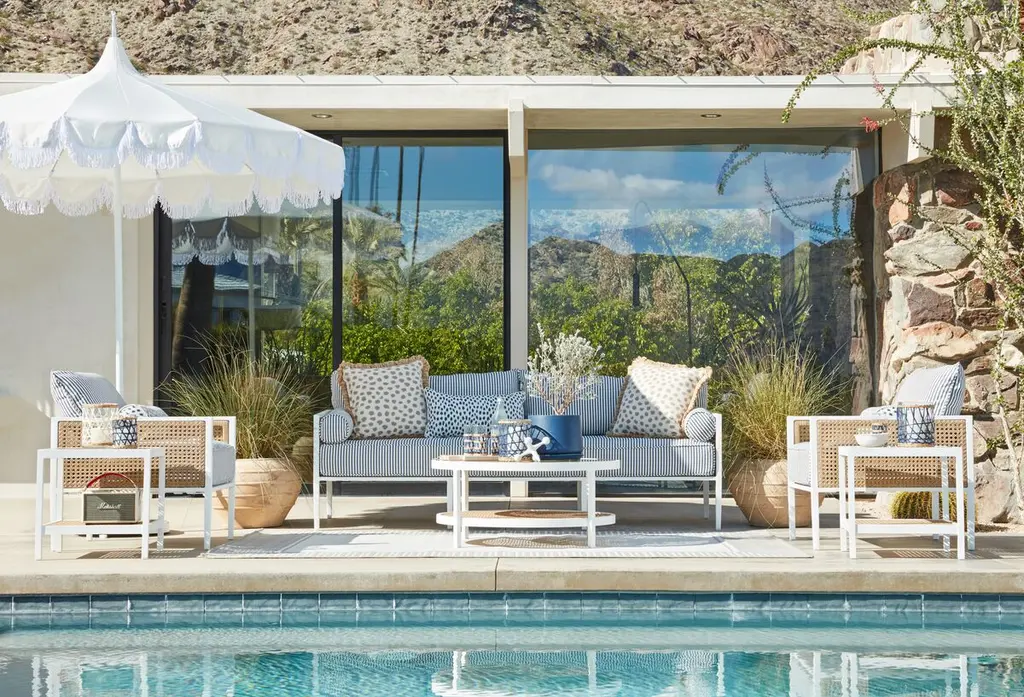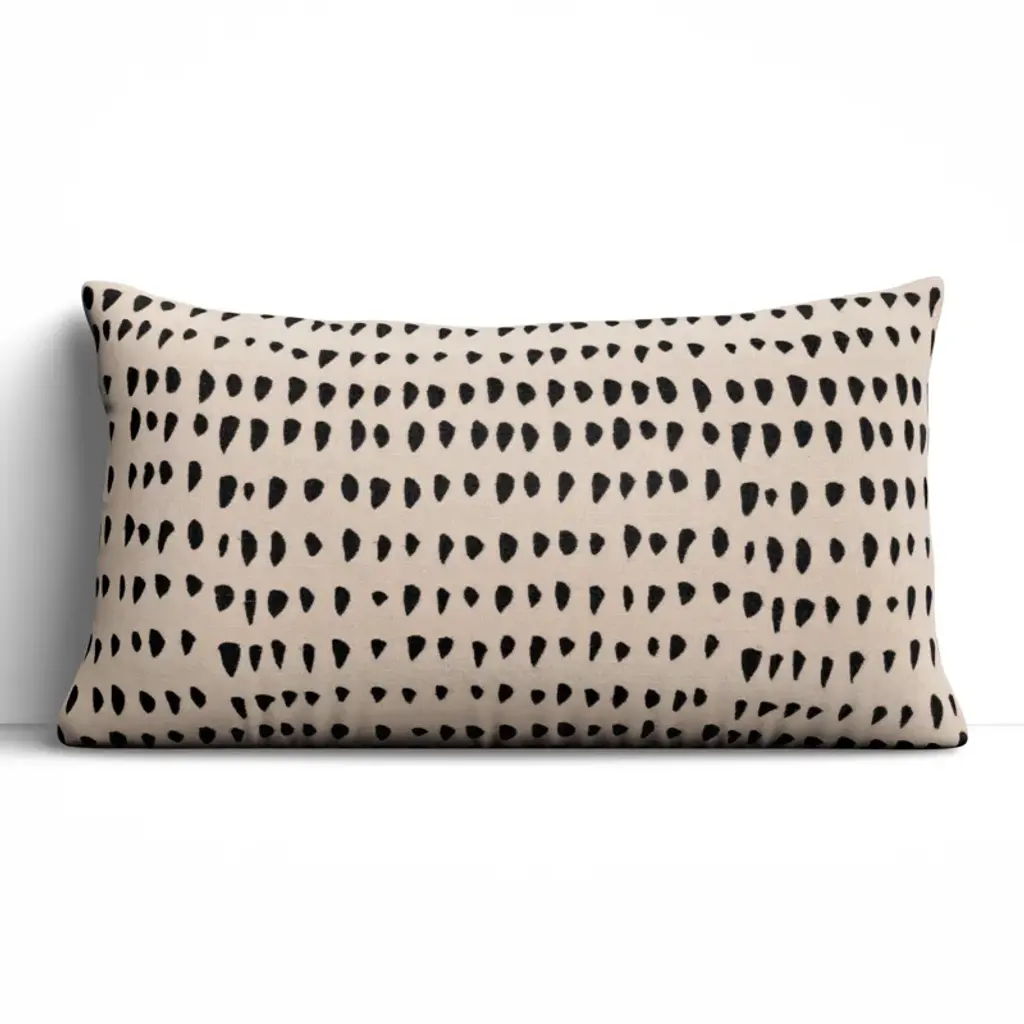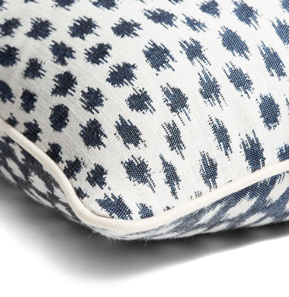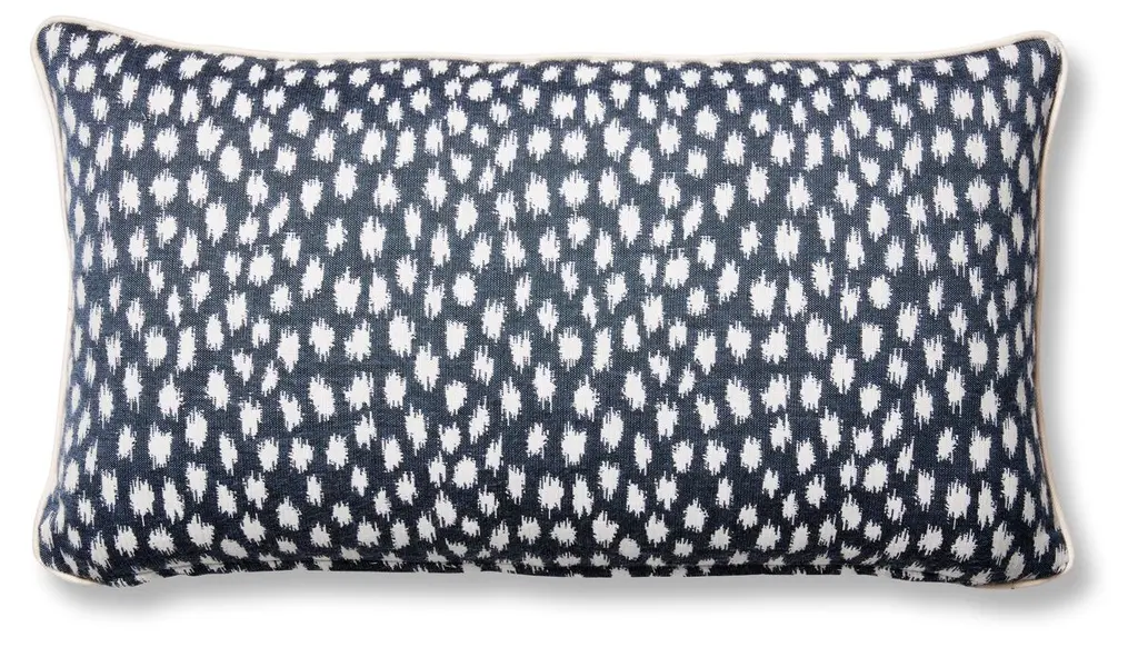 Designed by us and available only at One Kings Lane: The perfect complement to your outdoor furniture, these flat-sewn lumbar pillows are handmade in the USA from durable Sunbrella--an easy-to-clean, solution-dyed acrylic fabric that retains its brilliance season after season. It's also mold-resistant and soil-resistant, making these pillows ideal for the porch, patio, or poolside. We love the playful spot pattern and coordinating white welt. Inserts included.