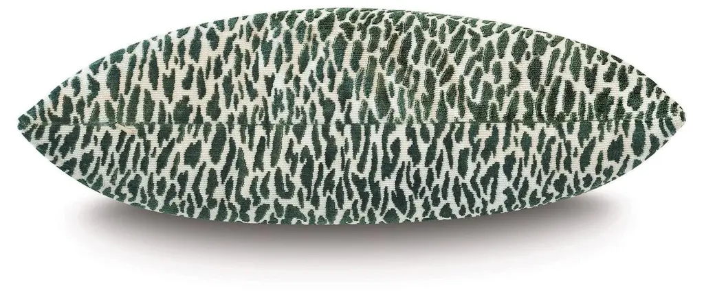 Exclusive to One Kings Lane: Woven in emerald green, this animal-print lumbar pillow is the epitome of glamour. The feather fill ensures luxe loftiness. Zipper closure.