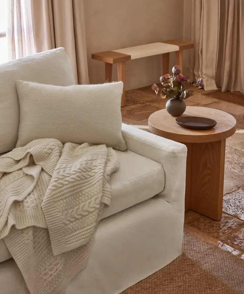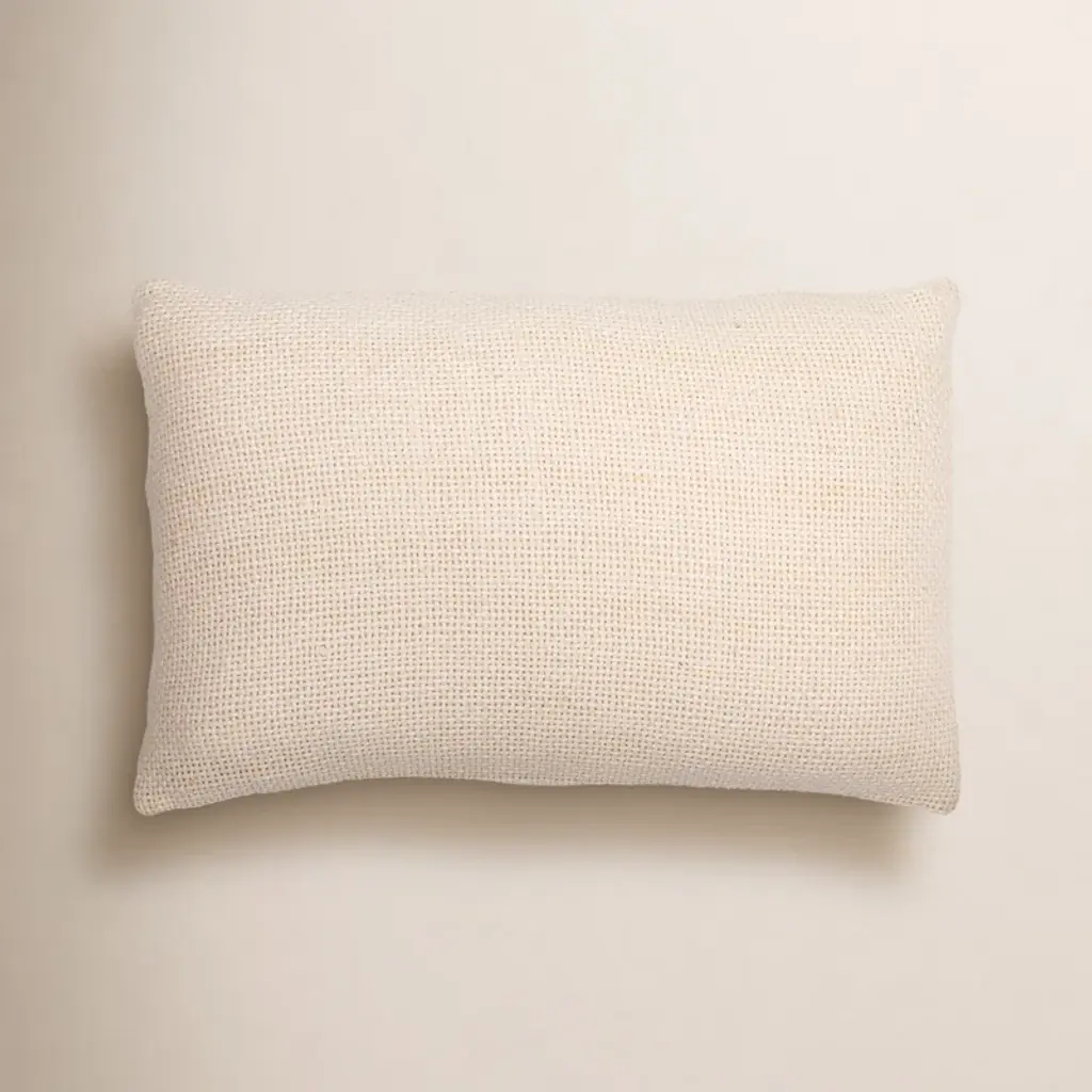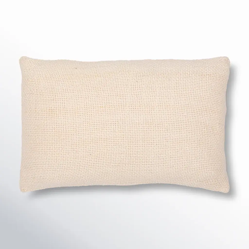 Alpaca Basketweave Lumbar Pillow Ivory Super-soft alpaca pillow designed to complete any space. Cover: 81% superfine alpaca, 19% polyamide. Lining: 100% cotton. Insert: 100% feather. Made in Peru and designed to last a lifetime. Superfine alpaca is handwoven by artisans in the mountains of Peru, making for a subtle texture that's as soft as it is durable. Discreet bottom zip closure and feather down insert included.