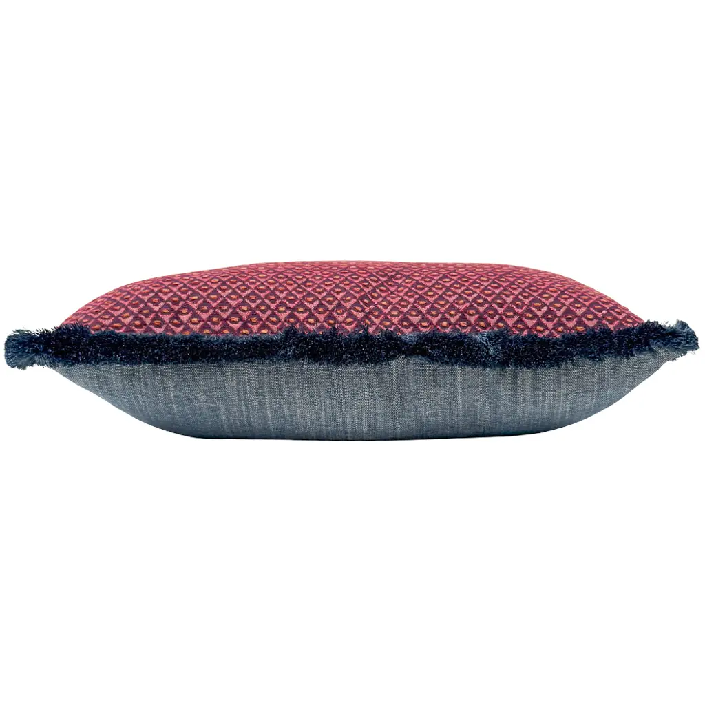 With a unique geometric pattern and flirty fringe trim, this pillow lends itself to be the perfect pop of color for any living space, bedroom, or office. It features a solid back with trim and a hidden zipper closure.