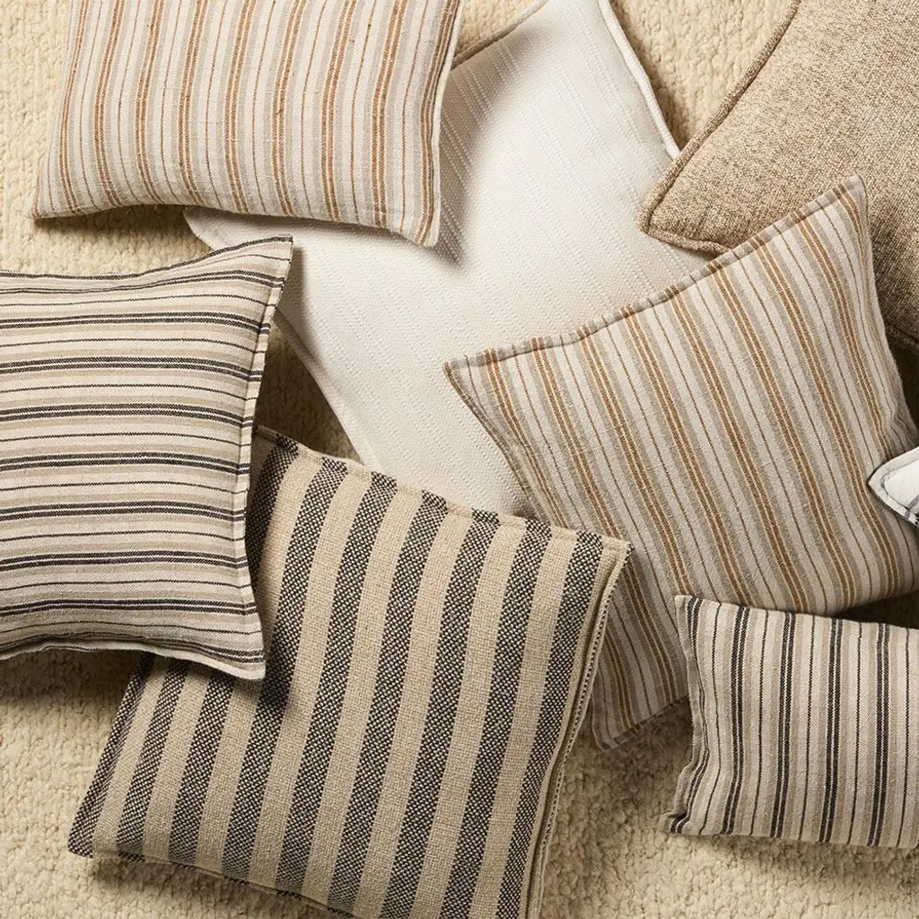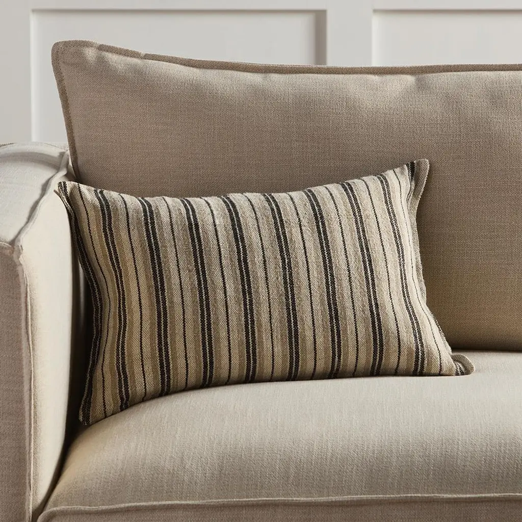 Ash Modern Dark Brown Linen Striped Lumbar Pillow - 13x21