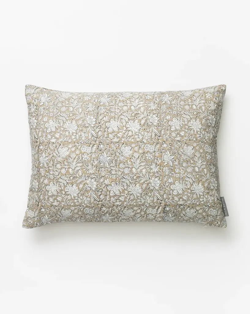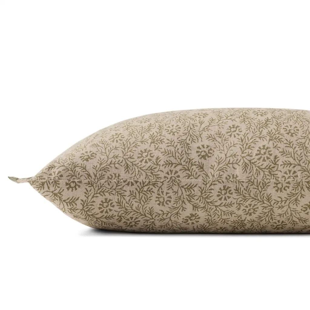 Asher Updated Traditional Green Linen Floral Lumbar Pillow - 13x21