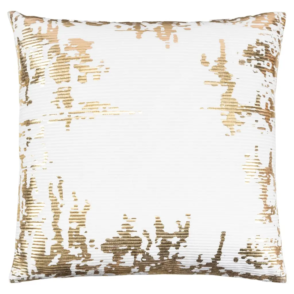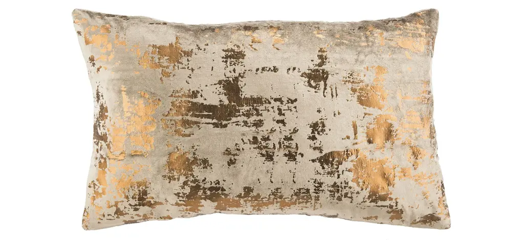 Oblong White Velvet with Quilting and shiny gold foil print pillow with knife edge.Size : 14”x 20”FeaturesZipper closureShiny gold foil printInsert includedFabric: VelvetShape: RectangularCare Instructions: Dry Clean/ Spot Clean Only