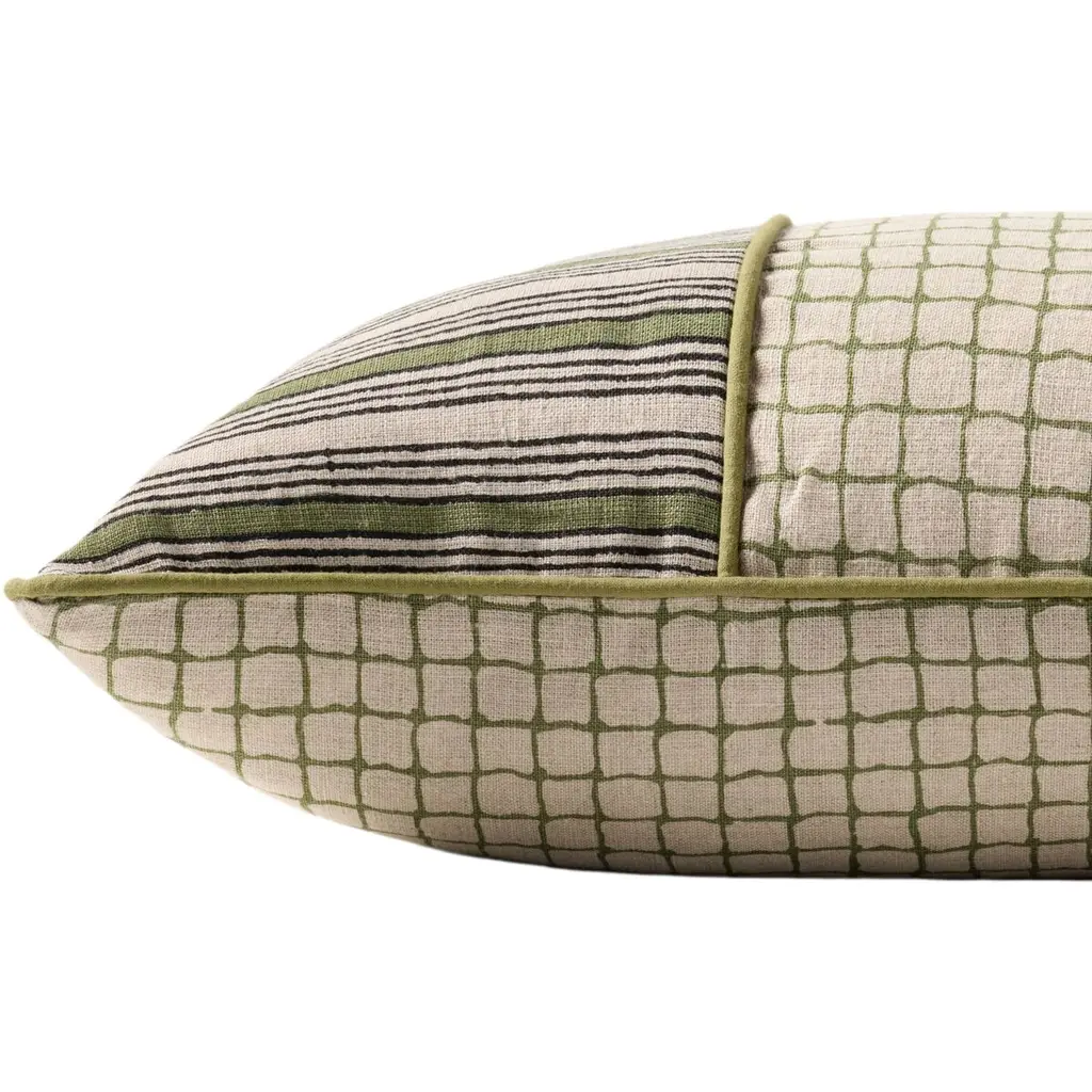 This throw pillow features a small-scale grid design that adds a classic, easy-to-pair pattern to living rooms, bedrooms, and more. The 12” x 27” lumbar pillow is woven in India of 100% linen.