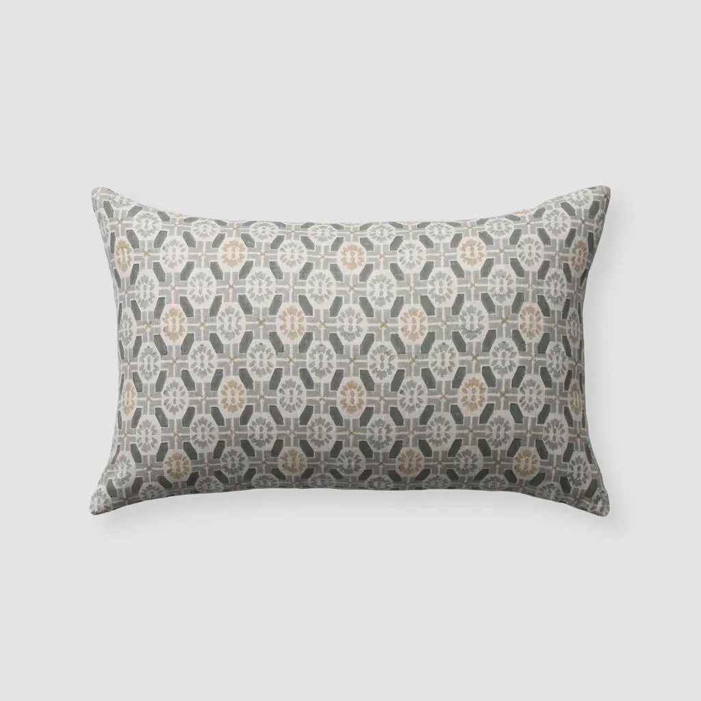 Ayana Block Print Lumbar Pillow - Aegean / 12'' X 20''
