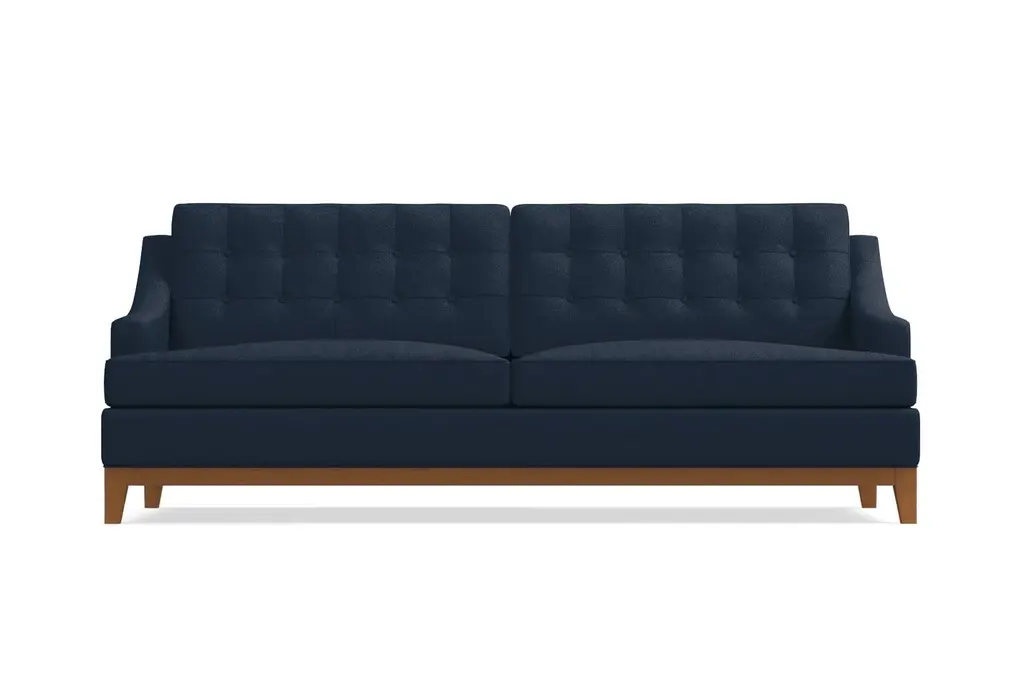We love how the name of the Bannister Sofa conjures up memories of sliding down the bannister as a kid. You're an adult now so you're no longer doing that (at least when no one is looking), but you're still a kid at heart. That's why this sofa will make you smile. In addition to the fun name, this sofa oozes sophistication and style. It's the perfect combination of traditional (thanks to the tufting) and modern (courtesy of the sleek silhouette). The quality wood base comes in three colors: natural, pecan or espresso, giving you the ability to choose the finish that best matches your other existing pieces of furniture. It even comes with two lumbar pillows upholstered in same fabric as sofa.