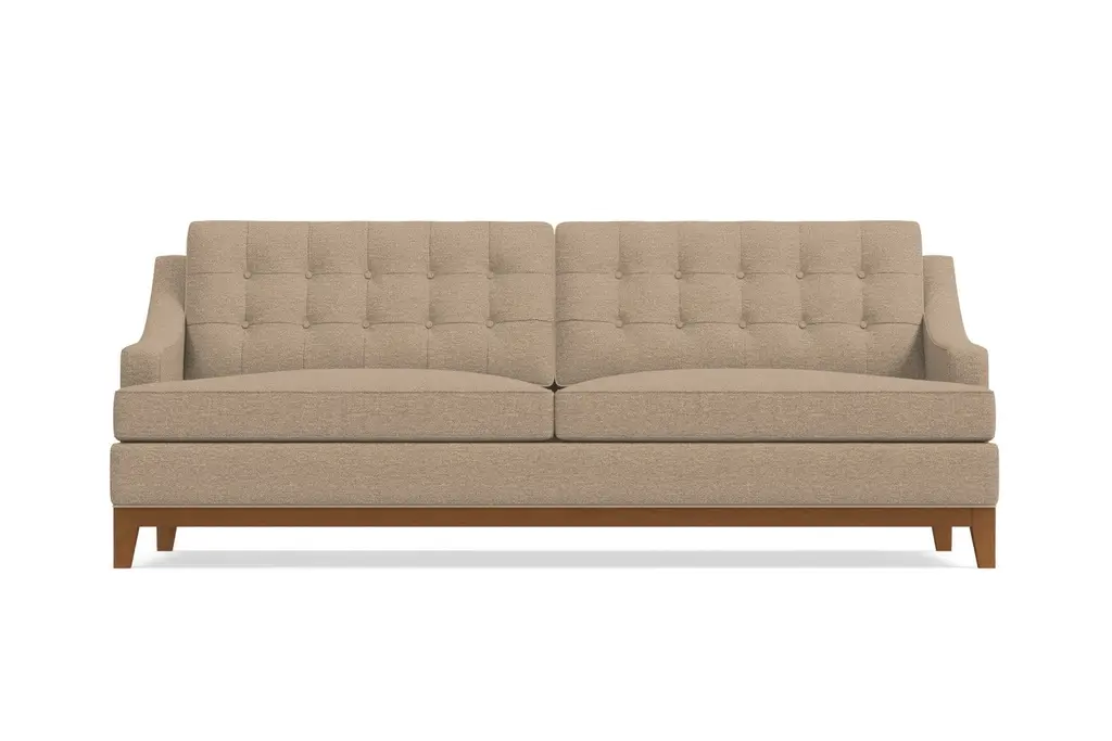 We love how the name of the Bannister Sofa conjures up memories of sliding down the bannister as a kid. You're an adult now so you're no longer doing that (at least when no one is looking), but you're still a kid at heart. That's why this sofa will make you smile. In addition to the fun name, this sofa oozes sophistication and style. It's the perfect combination of traditional (thanks to the tufting) and modern (courtesy of the sleek silhouette). The quality wood base comes in three colors: natural, pecan or espresso, giving you the ability to choose the finish that best matches your other existing pieces of furniture. It even comes with two lumbar pillows upholstered in same fabric as sofa.