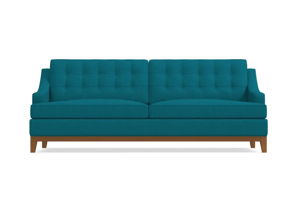 We love how the name of the Bannister Sofa conjures up memories of sliding down the bannister as a kid. You're an adult now so you're no longer doing that (at least when no one is looking), but you're still a kid at heart. That's why this sofa will make you smile. In addition to the fun name, this sofa oozes sophistication and style. It's the perfect combination of traditional (thanks to the tufting) and modern (courtesy of the sleek silhouette). The quality wood base comes in three colors: natural, pecan or espresso, giving you the ability to choose the finish that best matches your other existing pieces of furniture. It even comes with two lumbar pillows upholstered in same fabric as sofa.