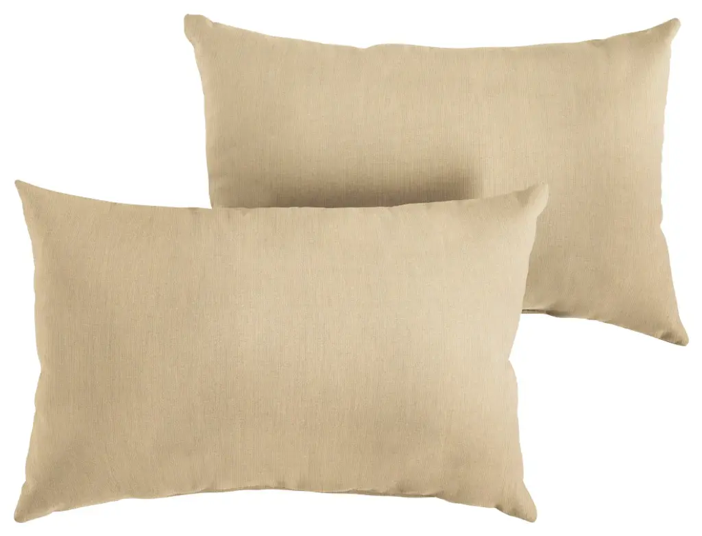 Complement the layout of any existing seating area with this set of two outdoor lumbar pillows. Featuring neutral colors, this set can reinforce the look and feel of seats and chairs inside or outside the home. The 100 percent recycled fiber filling ensures the pillows allow for a comfortable experience. These pillows are sewn closed and feature a UV and fade resistant exterior, which won''t be damaged by water and mildew from placement outdoors.