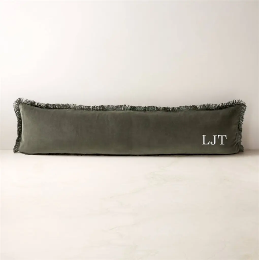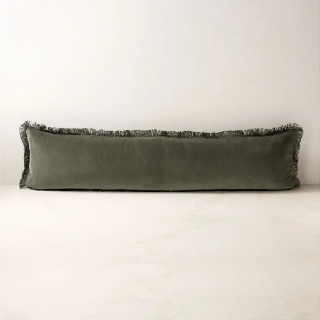 Rich tonal color is the secret to this seriously luxe throw pillow. Forest green velvet is edged in a fringe of slightly darker green for a look that's polished and pulled together. CB2 pillows include a pillow insert in your choice of feather down or down alternative. CB2 exclusive.