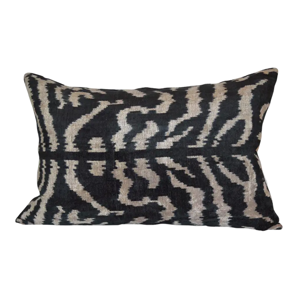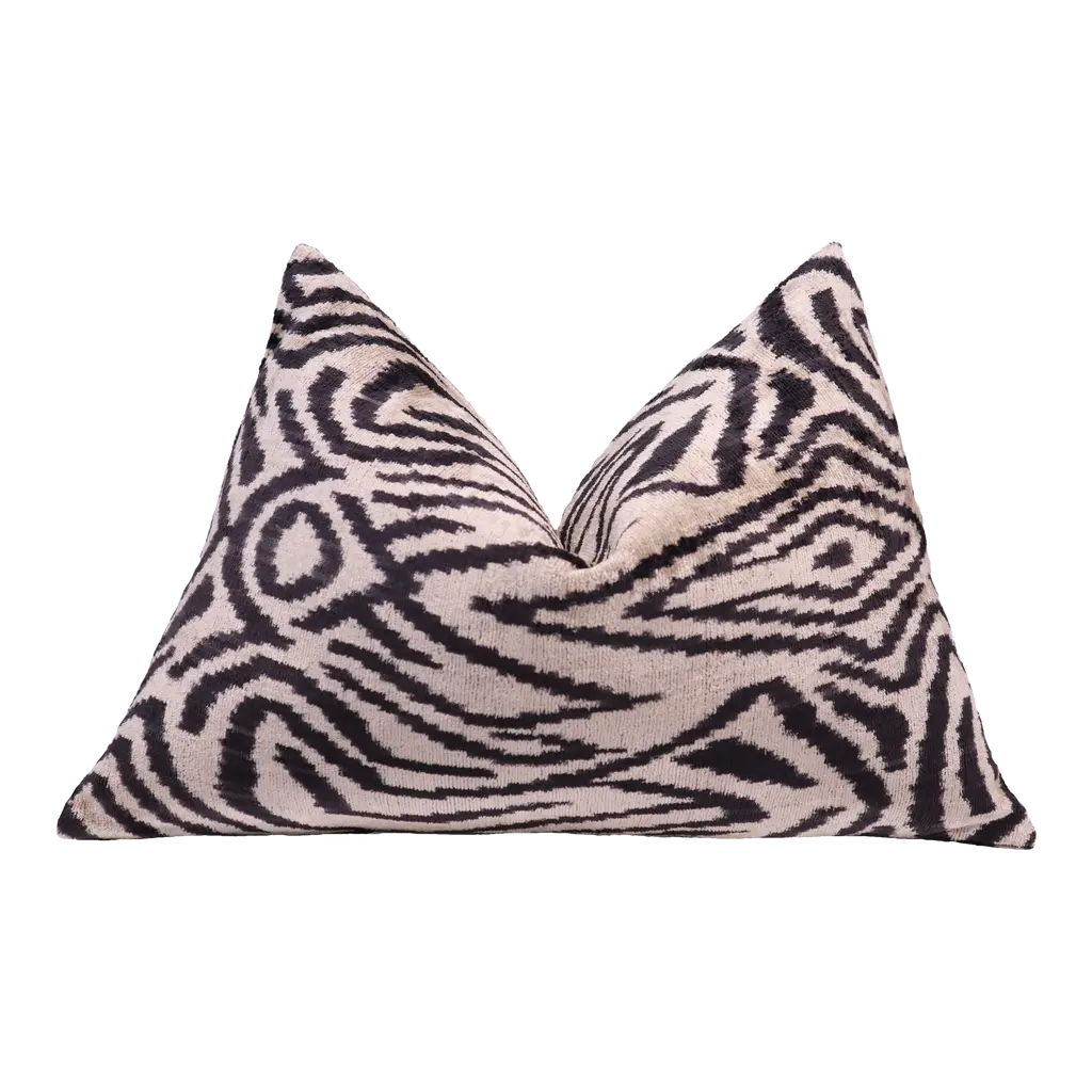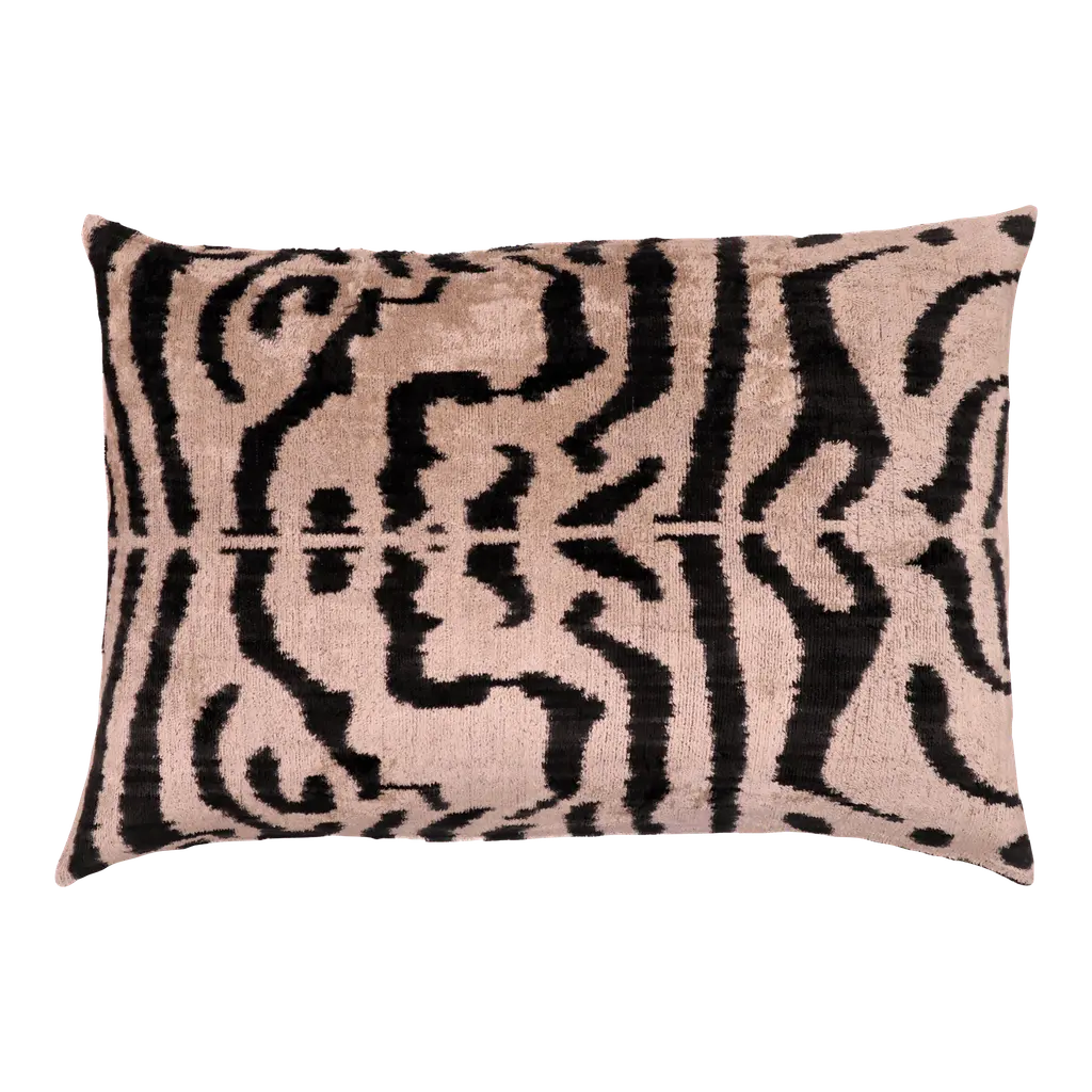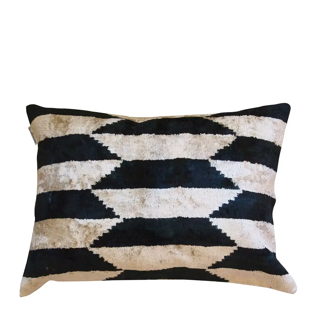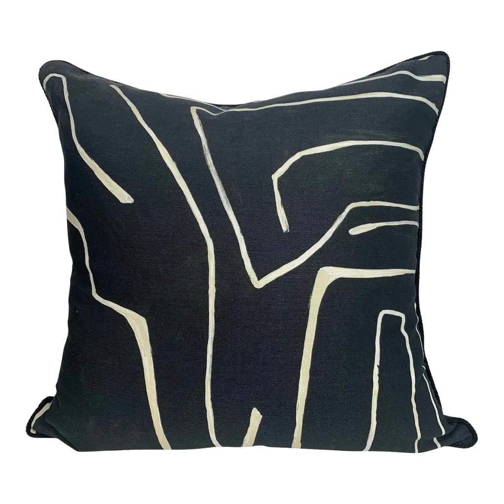 A striking black and white lumbar pillow enhances the contemporary mood of an interior. The slender rectangle pillow is hand-crafted using hair-on cowhide with a screen-printed, tribal abstract design. The black abstract design is printed onto a natural white cowhide with soft creamy undertones.This eclectic tribal abstract pillow expresses the beauty of natural and sustainable design providing an exotic element to an accent chair or bed. A limited edition, with only four available, the pillow comes fitted with a feather insert and is completed with a European linen reverse.Features:Col: Black and natural whiteCowhide pillow with hair onDimension: 25x55cmLimited EditionSingle-sided cowhide frontPure Linen reverseMade in AustraliaFeather cushion insert includedProduct care:Spot clean only with clean lukewarm water and gentle wool wash detergent. Do not submerge into water or wash. Do not apply chemical agents Professional Dry clean only.Natural product:This pillow is a natural product therefore variation in color tones and print may vary and are all classed as natural characteristics of animal skin products.