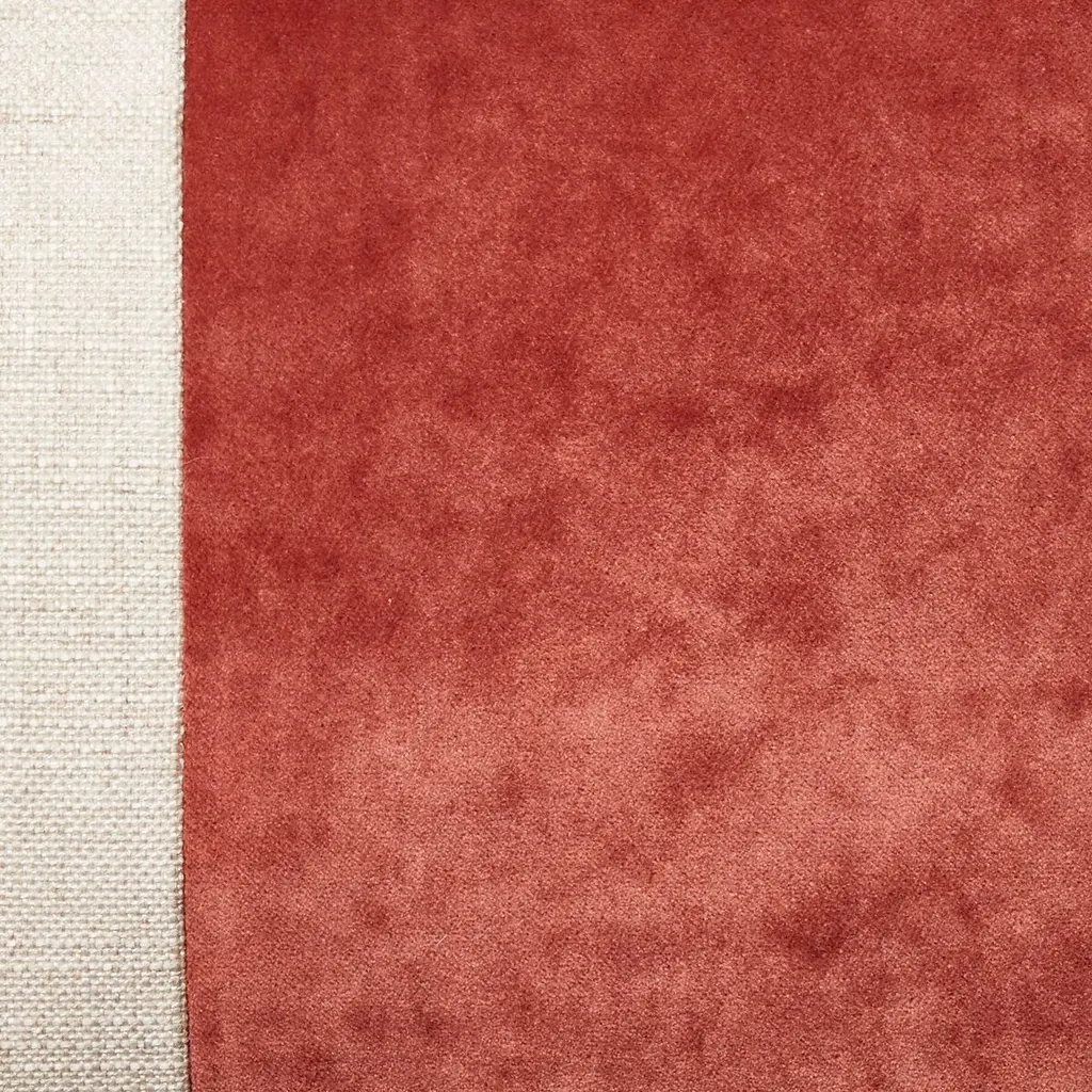 Designed by us and available only at One Kings Lane: A classic accent for any sofa, bed, or chair, this pillow is made of natural linen-blend fabric with a rust-hued velvet stripe down the center and knife edges. Solid back. Insert included. Zipper closure.