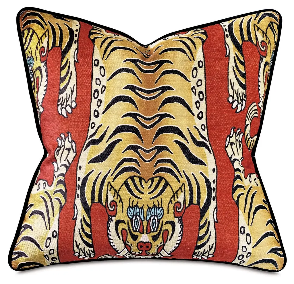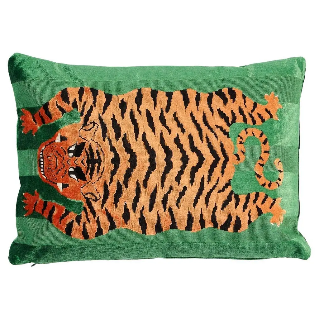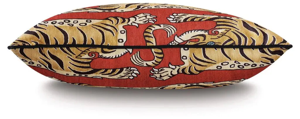 Exclusive to One Kings Lane: The Chinese consider the tiger, not the lion, to be the king of beasts as well as a symbol of good luck. We can't guarantee that this lumbar pillow, with its chinoiserie tiger design on both the front and the back, will bring you luck, but it will definitely bring timeless chic to a room. The feather fill ensures luxe loftiness. Zipper closure.