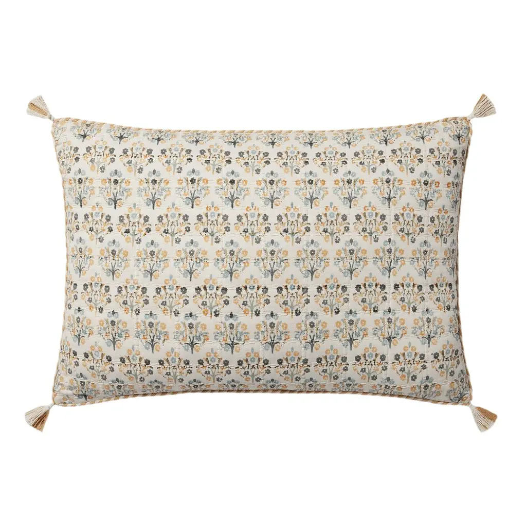 Brady Lumbar Block Print Pillow, Wheat/multi