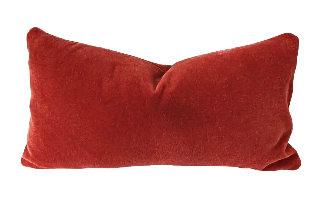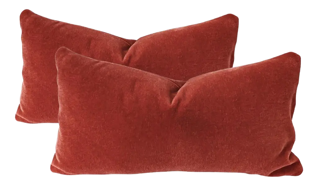 Burnt Red Mohair Lumbar Pillows 12" X 22" - A Pair
