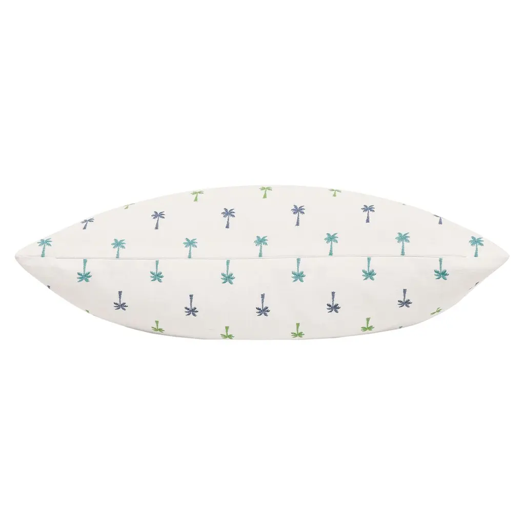 Calypso Emroidered Palm Tree Lumbar Pillow, Blue/green/white