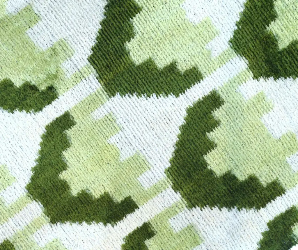 "Bring a touch of nature-inspired elegance to your home decor with this handmade velvet lumbar pillow, featuring a refreshing green and cream Ikat pattern that adds a calming yet stylish accent to any room. Measuring 16x24 inches, this pillow is the perfect decorative piece for your sofa, couch, or bed, blending comfort and sophistication seamlessly. Crafted from high-quality, vegetable-dyed velvet, this pillow is both eco-friendly and meticulously handmade, ensuring a unique and luxurious feel in every detail. The soft, plush texture of the velvet is complemented by a premium 16x26 inch down feather insert, providing superior comfort and support, making it as functional as it is beautiful. The green and cream Ikat design draws inspiration from traditional global patterns, adding a versatile, stylish touch to various interior styles, from modern to boho-chic and eclectic. This pillow not only enhances the aesthetic appeal of your living space but also introduces a sense of global artistry and sustainable craftsmanship. Ideal for homeowners and interior designers alike, this pillow stands out with its rich colors, intricate pattern, and luxurious feel. Whether you're looking to refresh your living room or add a decorative accent to your bedroom, this pillow offers the perfect blend of style, comfort, and quality."