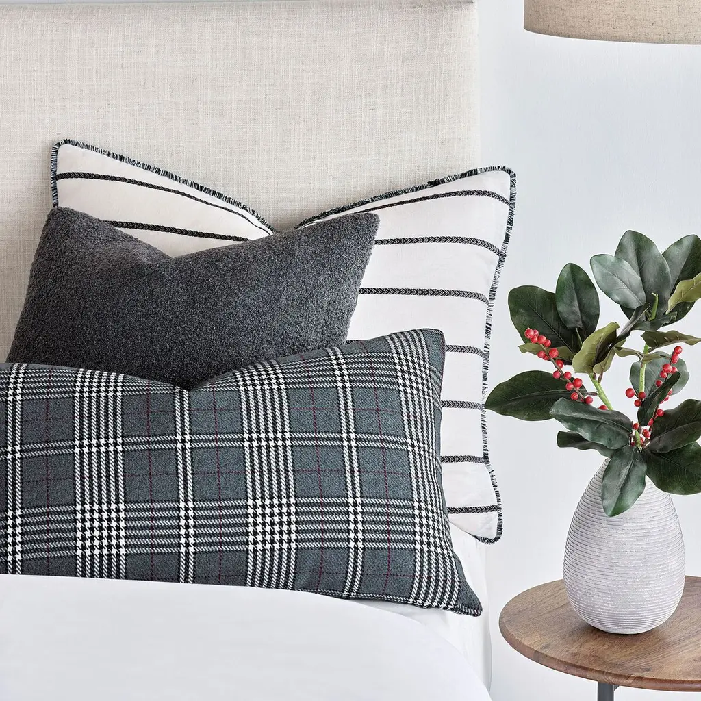 Introducing the Carrie Plaid Lumbar Pillow, a sophisticated addition to any living space. This decorative pillow features a timeless plaid design, complemented by a self-backed finish in a luxurious fabric. The knife edge finish adds a touch of elegance, while the included pillow insert ensures comfort and support. Designed with practicality in mind, the pillow includes a convenient zipper closure for easy care. For best results, dry clean only. Elevate your home decor with this versatile and stylish accent piece.
