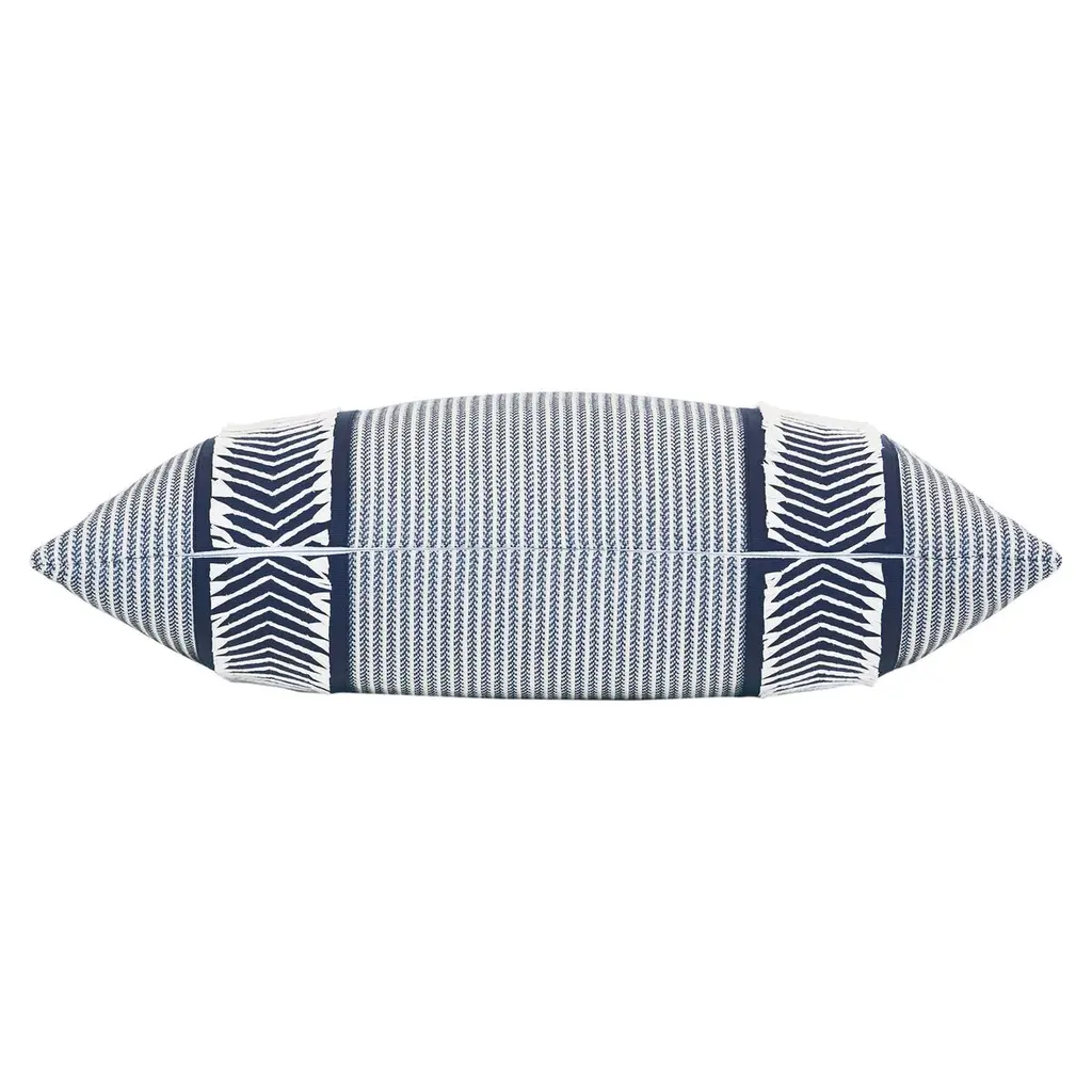 Caspian Chevron Trim Lumbar Pillow, Blue/white