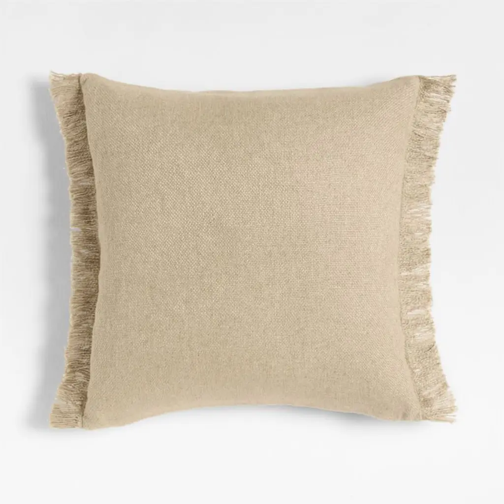 An irresistibly soft and slubby weave gives this throw pillow a relaxed look and feel that you'll want to snuggle up with every day. The inclusion of silky viscose adds a sophisticated sheen to the organic beauty of sustainably sourced linen fibers. Yarn-dyed a warm taupe hue inspired by flax, the fringed pillow looks chic and casual tossed on a sofa, armchair or bed-especially paired with the matching throw blanket. Our lumbar pillow includes your choice of a plush feather-down or lofty down-alternative insert.