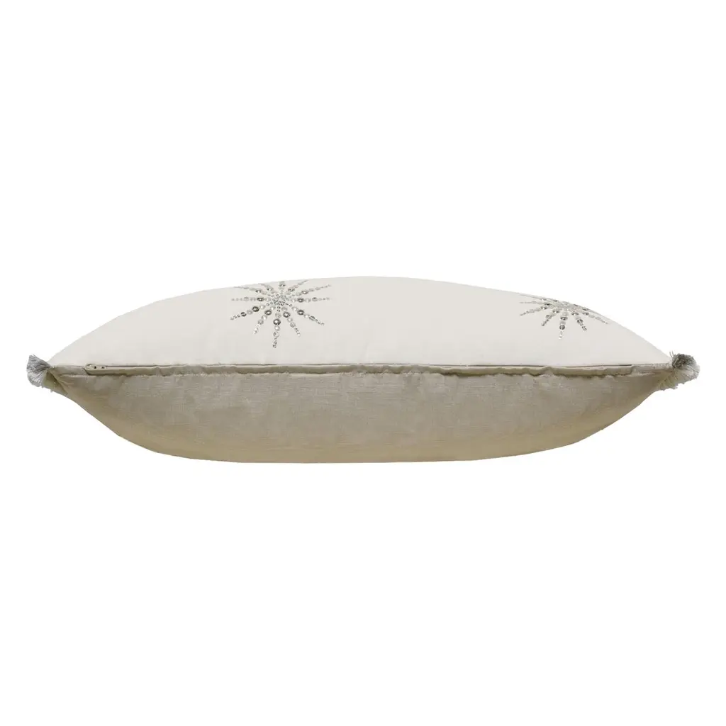 Celeste Sequin Star Fringe Lumbar Pillow, Silver