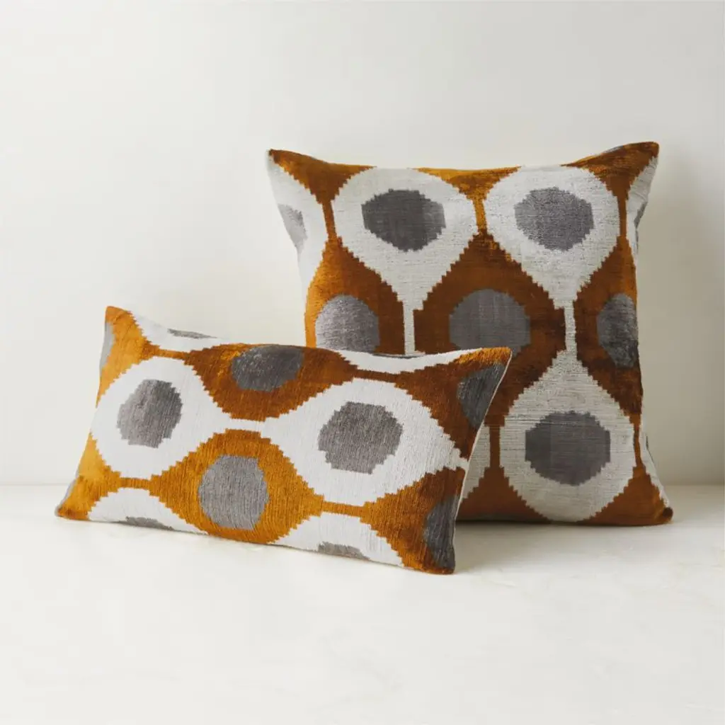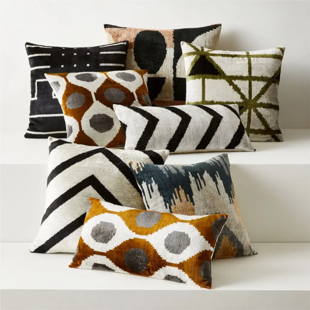Turkish silk threads are handloomed into a rich, velvet-like texture to create one of the most sumptuous, luxurious throw pillows we've ever seen. Because the silk is collected from different areas, there will be slight differences in the tapenade, white and charcoal color palette, as well as variations in the weave due to the handcrafted nature of the process. Knife edge with a hidden zipper closure, pillow flips to a solid cotton/linen blend back. CB2 pillows include a pillow insert in your choice of feather down or down alternative. CB2 exclusive.