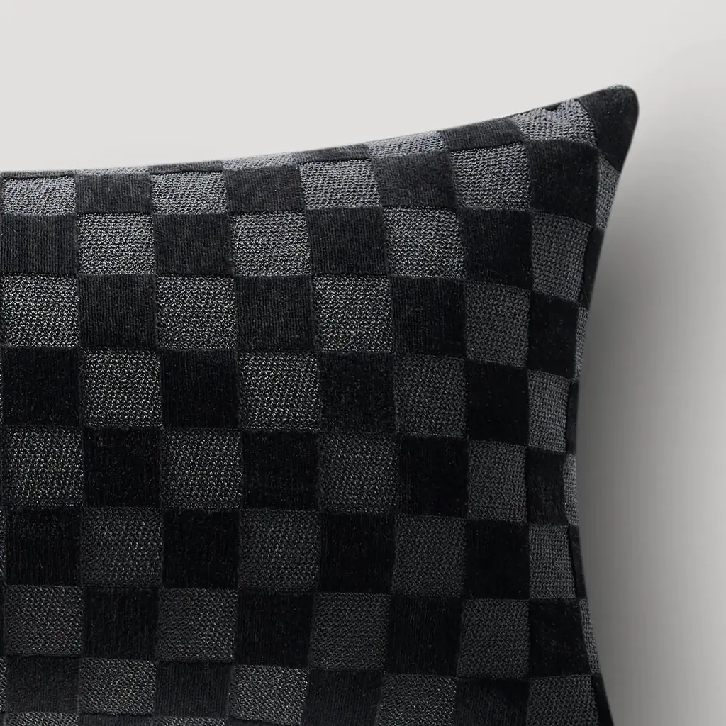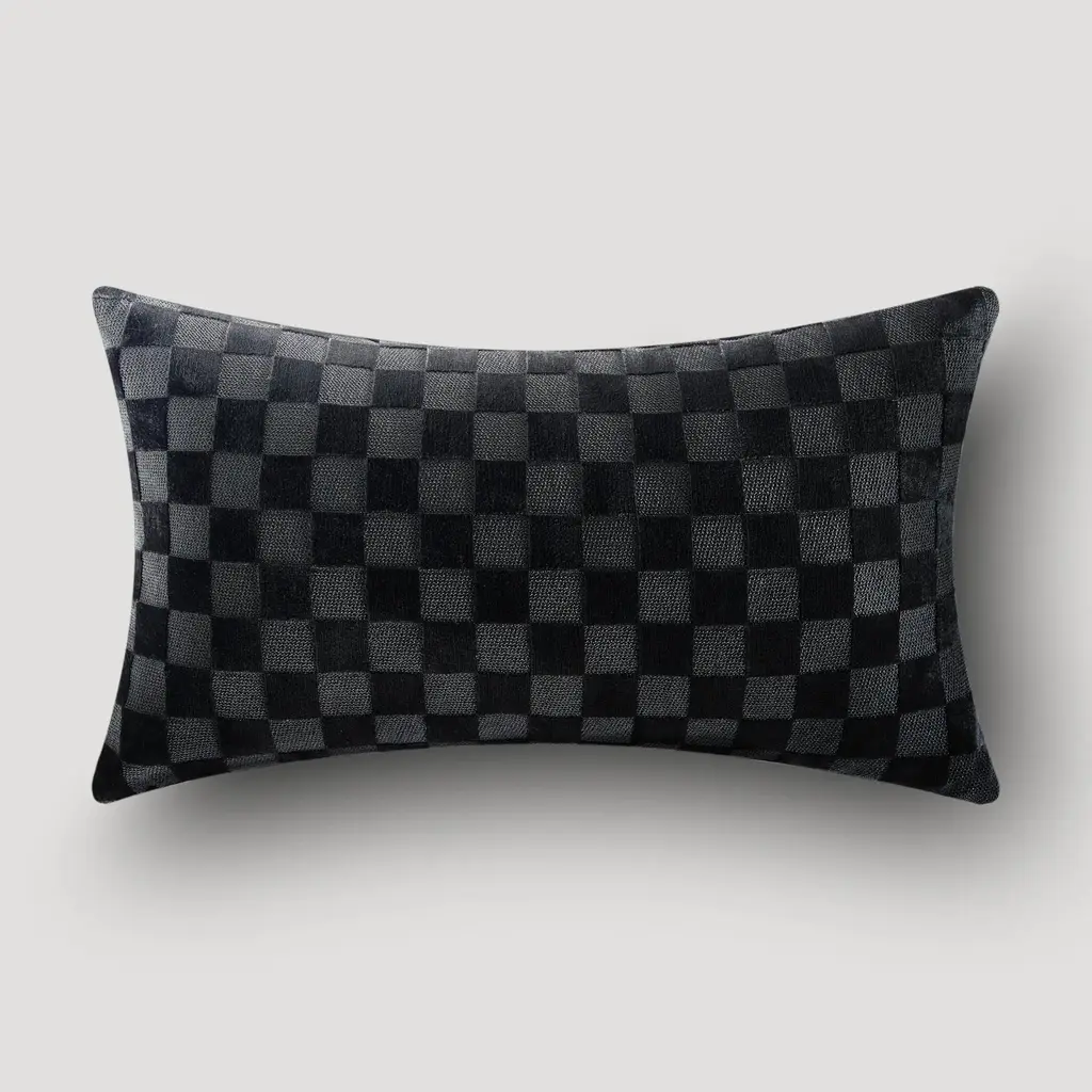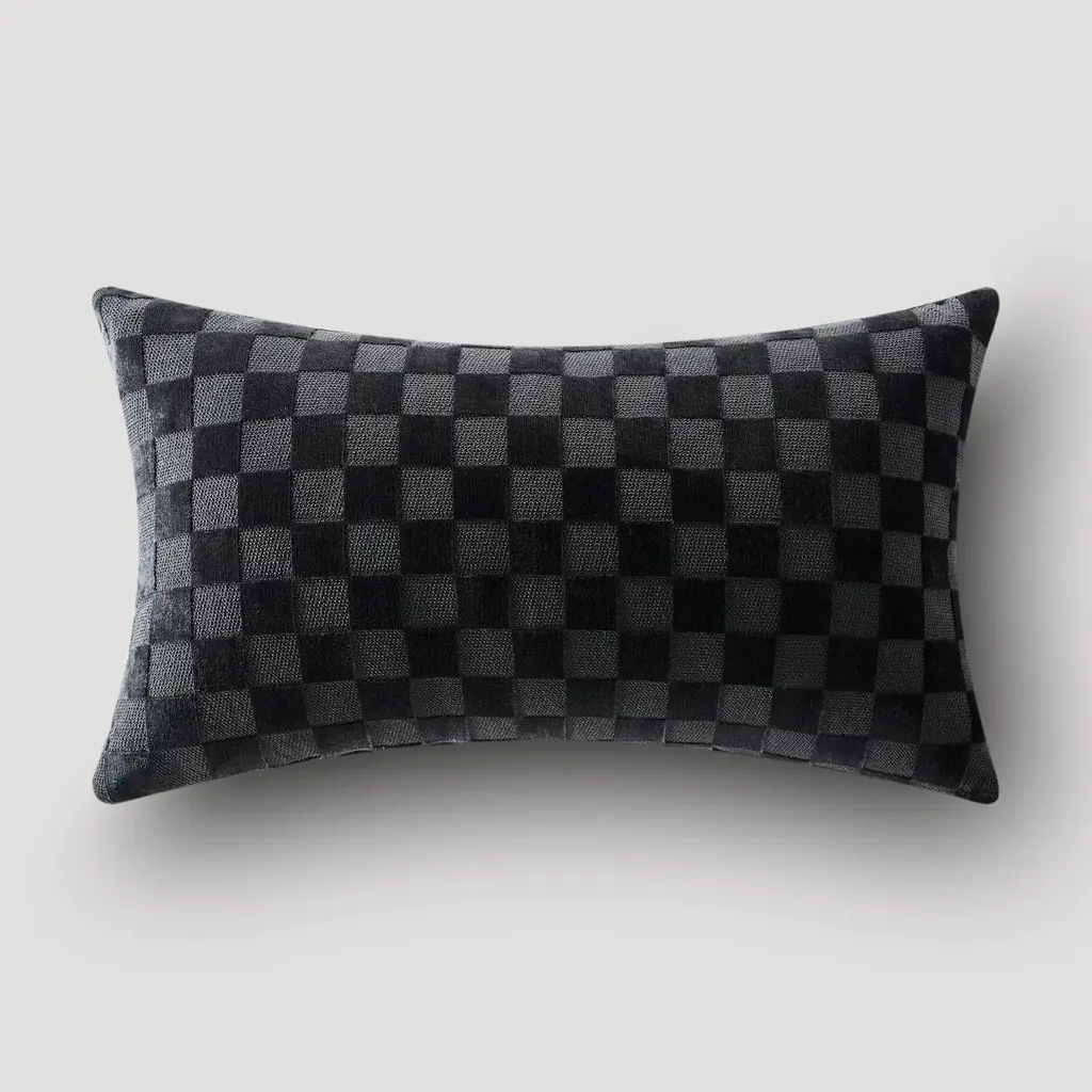 Checker Velvet Lumbar 12" X 22" - Black