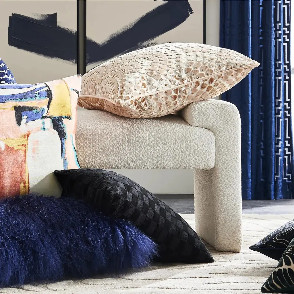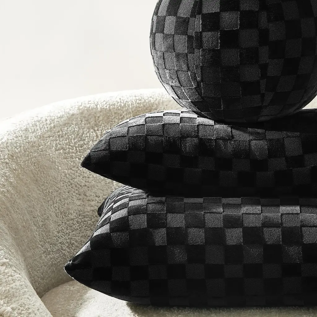 Our Checker Velvet Lumbar Pillow combines style and support in a versatile rectangular design. The cut velvet pattern creates a sophisticated geometric surface that adds subtle texture and visual interest. This pillow's rich black dimensional checkerboard design enhances seating while providing perfect lumbar support for chairs, benches, or beds.Z Gallerie Exclusive