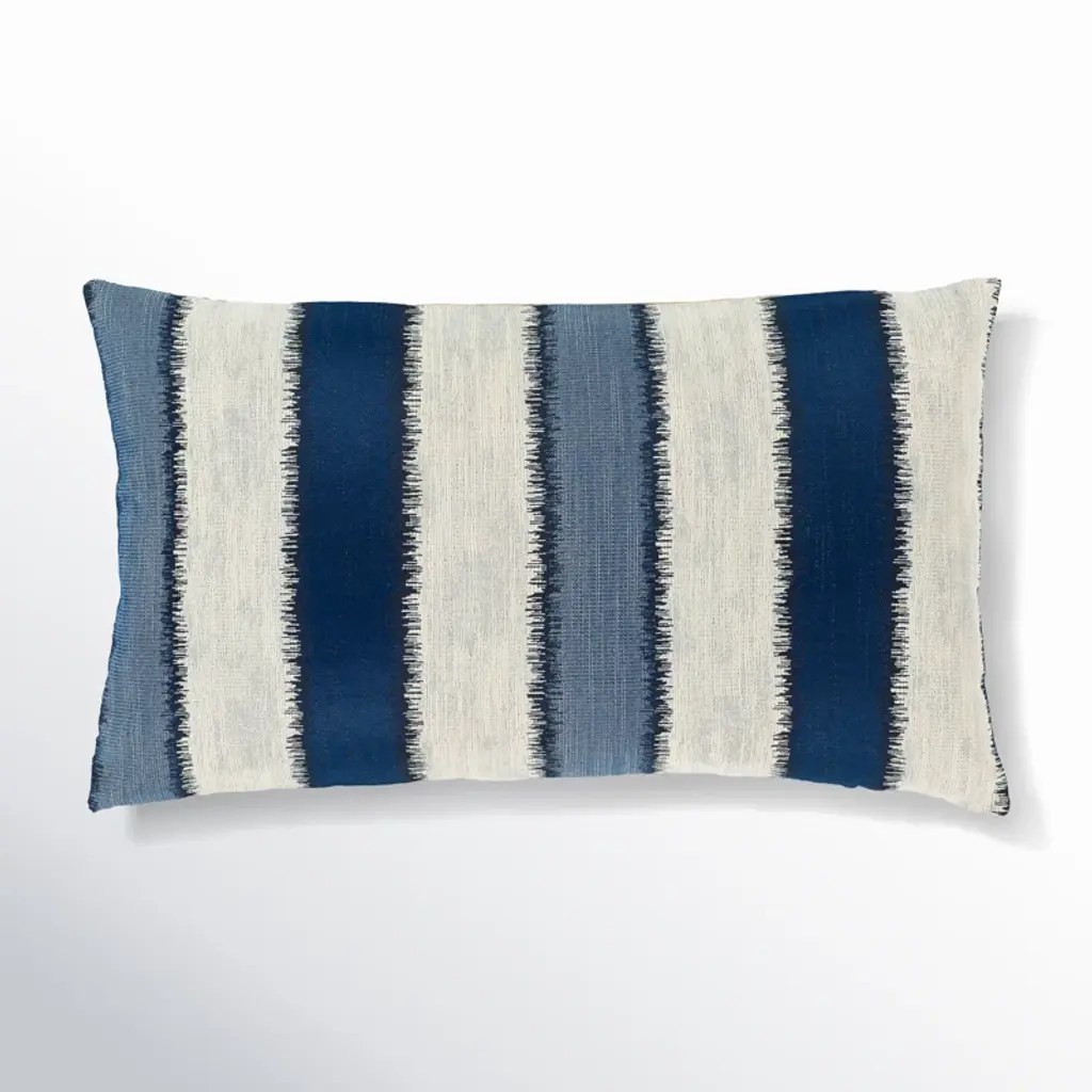We're low-key in love with this lumbar pillow: It lets stripes do what they do best (break up a solid-toned piece of furniture) while updating it with a boho vibe. The cover is made from polyester material and has a pattern of blue, navy, and ivory stripes. Each stripe has a ragged edge for a boho take on one of our favorite decorating go-to's.