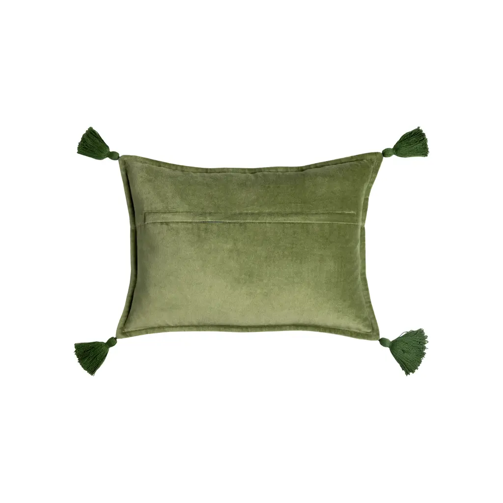 Cotton Velvet Lumbar Pillow With Tassels