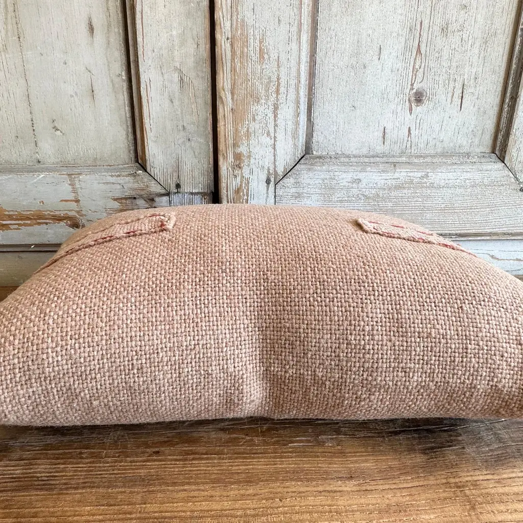 Custom Hand Stitched Wool Patchwork Pillow In Blush Wool