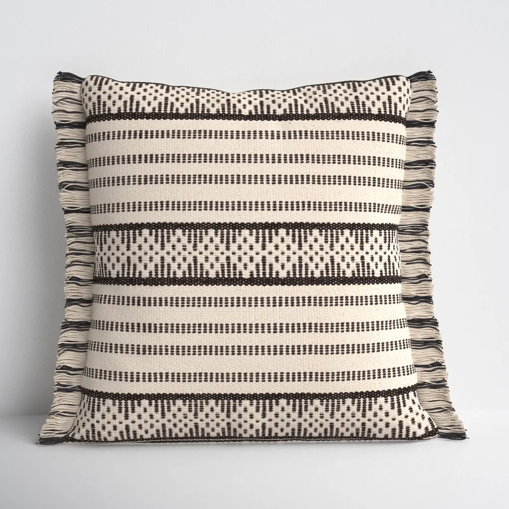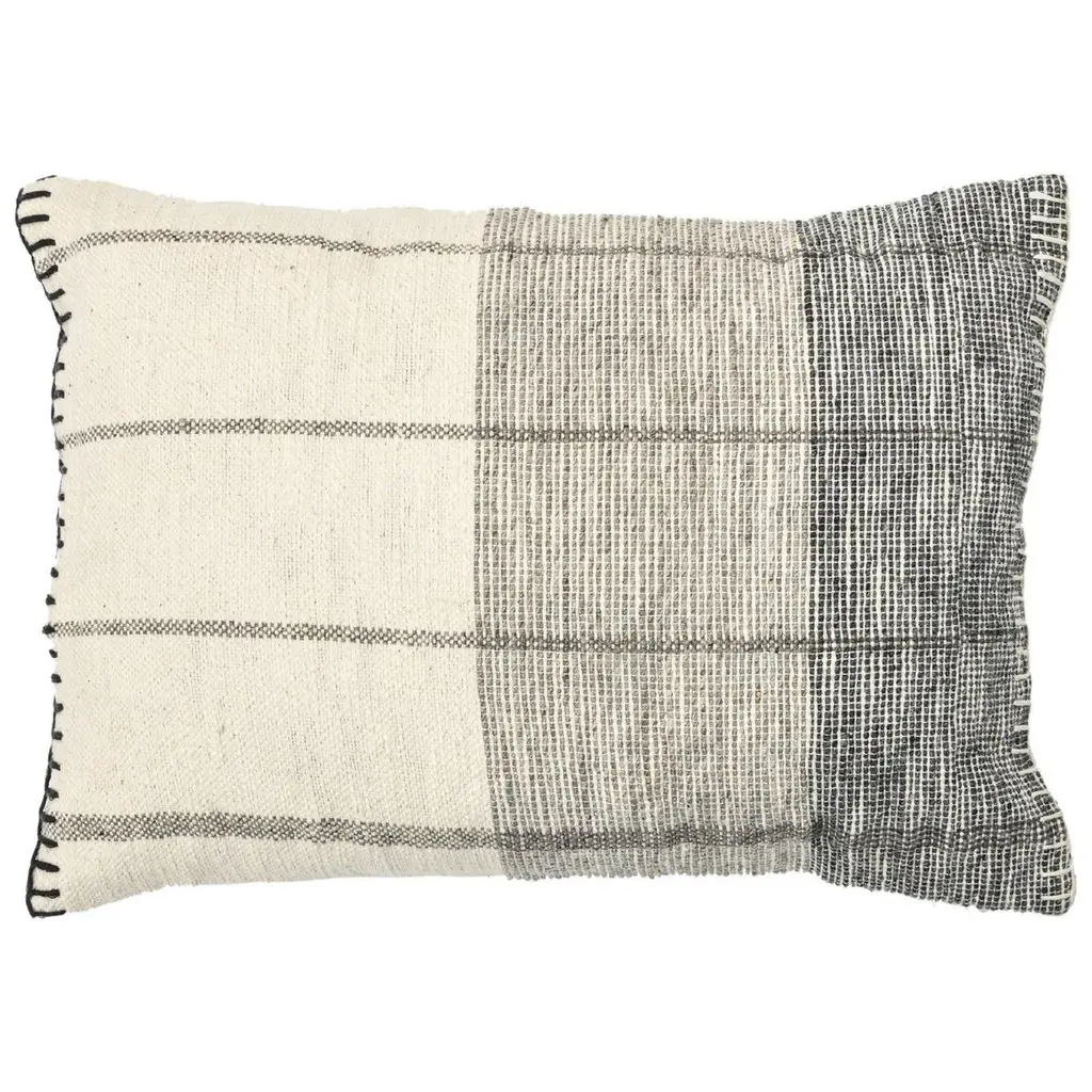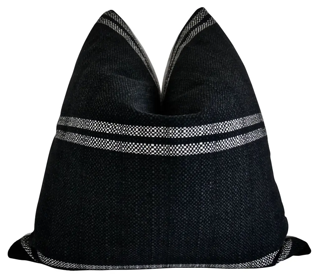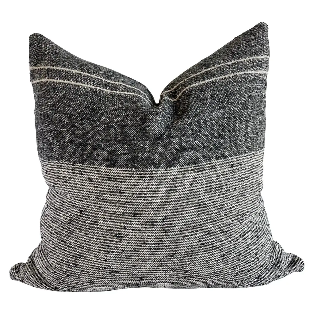 Custom Linen And Wool Blend Black Textured Stripe Pillow With Down Insert
