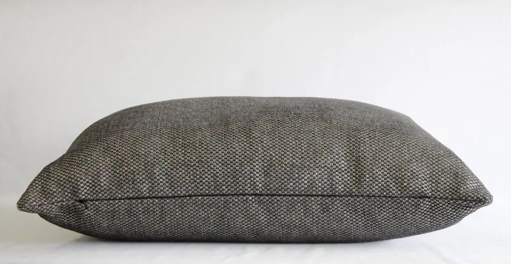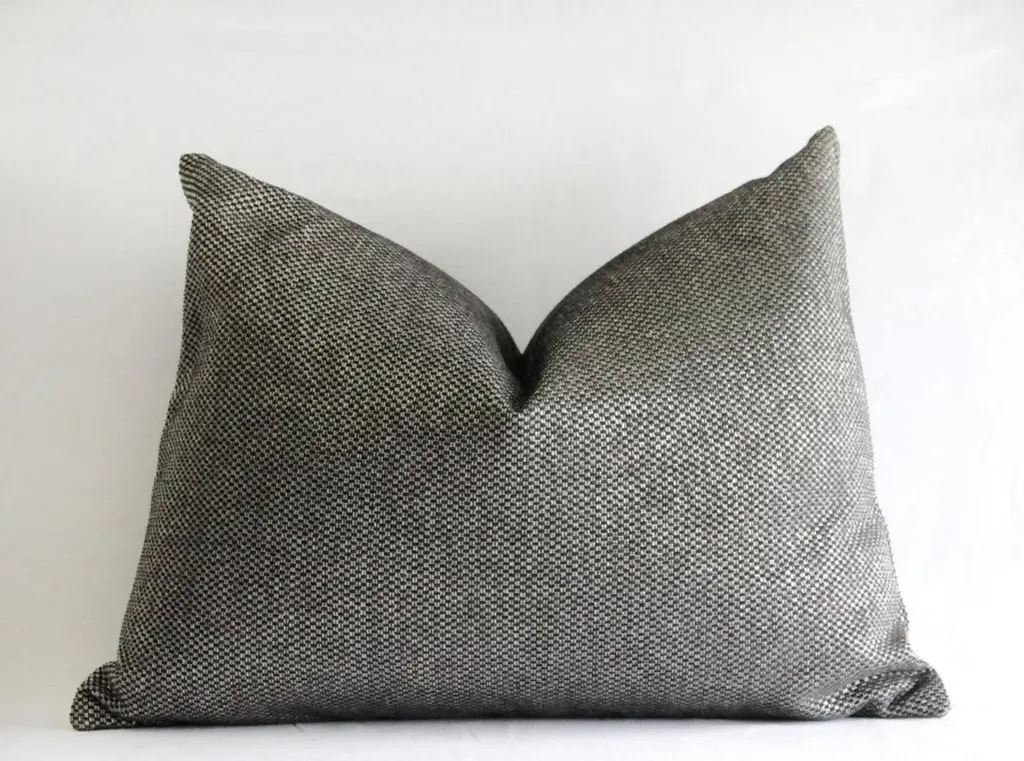 Custom Lumbar Pillow In Black And Silver Gray Woven Fabric