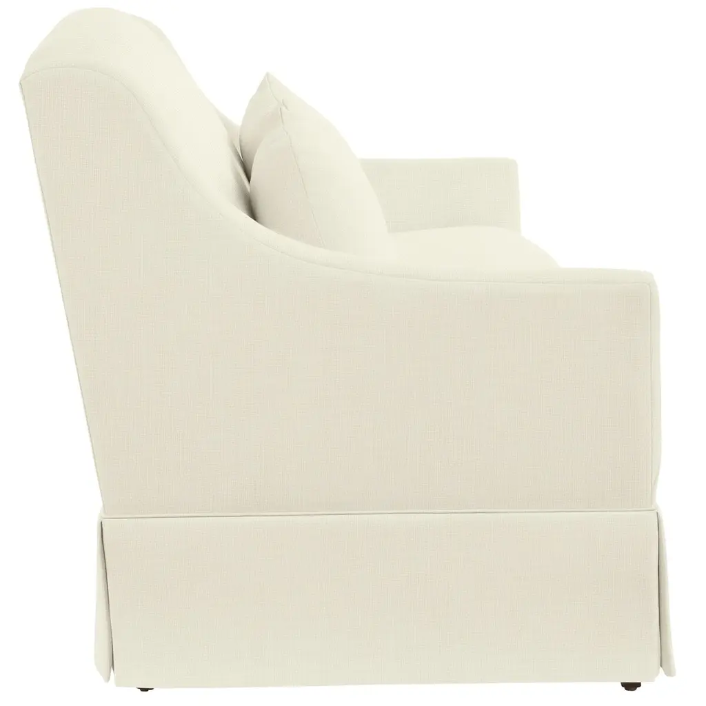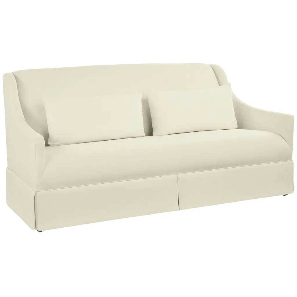 Exclusive to One Kings Lane: A seamless marriage of comfort and style, this sofa features sloped arms and an elegant dressmaker skirt. It is upholstered in Crypton, an eco-friendly high-performance fabric that repels stains, spills, bacteria, and mold. Bench cushion and two lumbar pillows included. Constructed of an engineered hardwood-laminate frame, eight-way hand-tied suspension system, and a tight seat cushion ensure long-lasting comfort and support. Each piece is handcrafted by skilled artisans in High Point, NC and offers a lifetime warranty on the frame and suspension system and a limited lifetime warranty on the seat cushion.