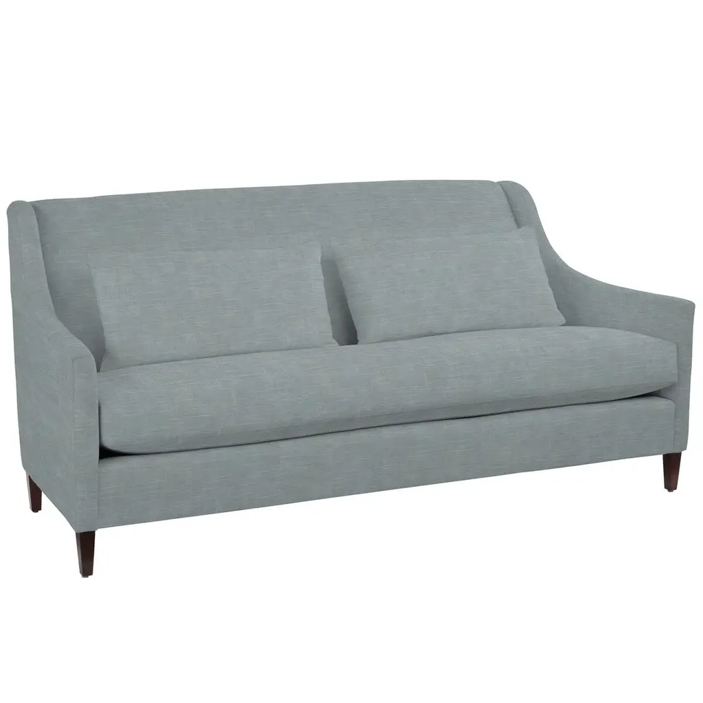Exclusive to One Kings Lane: A seamless marriage of comfort and style, this sofa features sloped arms and an elegant tapered leg. It is upholstered in Crypton, an eco-friendly high-performance fabric that repels stains, spills, bacteria, and mold. Bench cushion and two lumbar pillows included. Constructed of an engineered hardwood-laminate frame, eight-way hand-tied suspension system, and a spring foam cushion wrapped in polyester fibers with down-proof ticking ensure long-lasting comfort and support. Each piece is handcrafted by skilled artisans in High Point, NC and offers a lifetime warranty on the frame and suspension system and a limited lifetime warranty on the seat cushion.