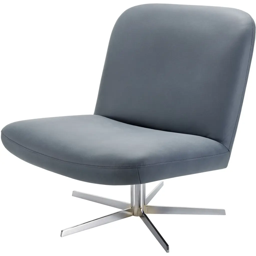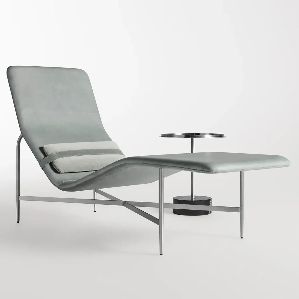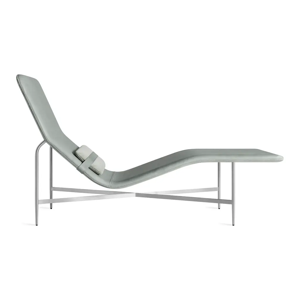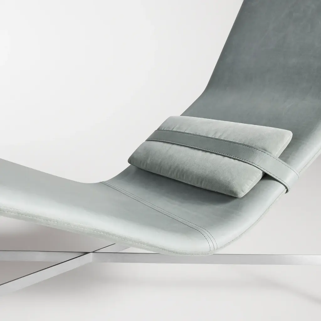 Leather wrapped contours form a relaxing position that equally invites introspection and socialization. The contrasting lumbar pillow slides to be where you want it and blackened steel base provides all the support needed to start your journey of taking a damn load off. Lounge Chair also available.