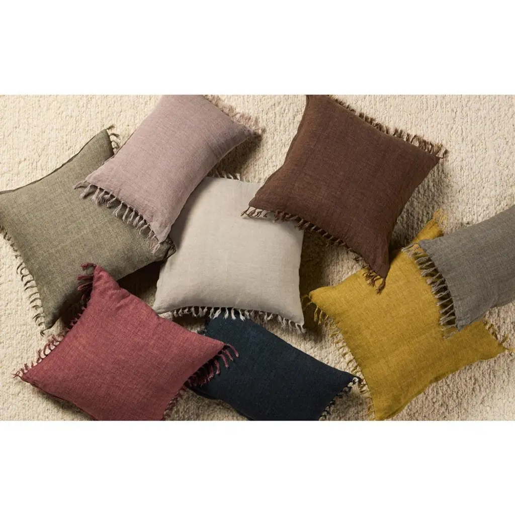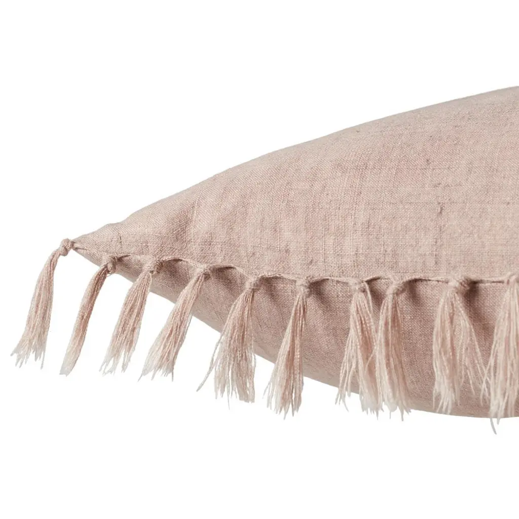 Effie Coastal Blush Linen Tassel Lumbar Pillow - 13x21
