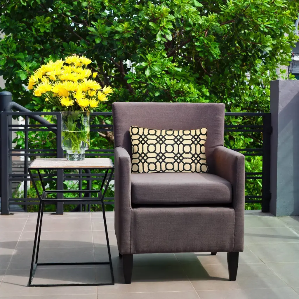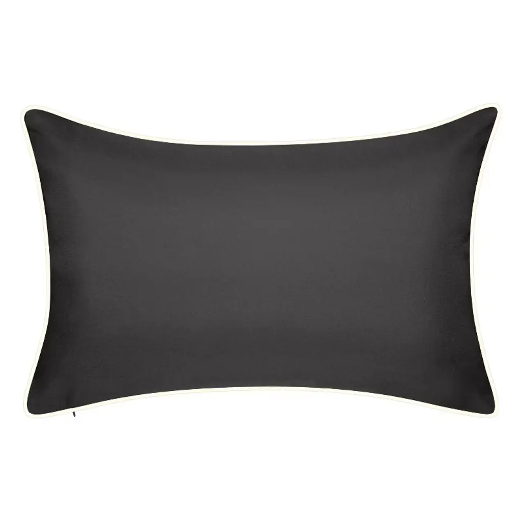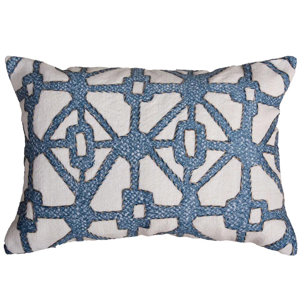 Edie@Home Indoor & Outdoor Decorative Pillow Collection combines modern, classic and contemporary style to create unique designs for your home. Each pillow is crafted from high quality weather-resistant fabric that can be placed outdoors on your backyard patio, front porch or deck but look just as good on your living room sofa and couch, master bedroom, guest room, nursery or your favorite armchair. Zipper closure and easy spot clean keeps the pillows looking good as new year after year. The Raffia Embroidered Geometric Decorative Lumbar Pillow uses raffia to showcase a rustic yet elegant design perfect for home fashion enthusiasts. Available in White/Navy, Black/Natural and Capri/Natural to complement any existing home decor. 100% Polyester. Easy spot clean.