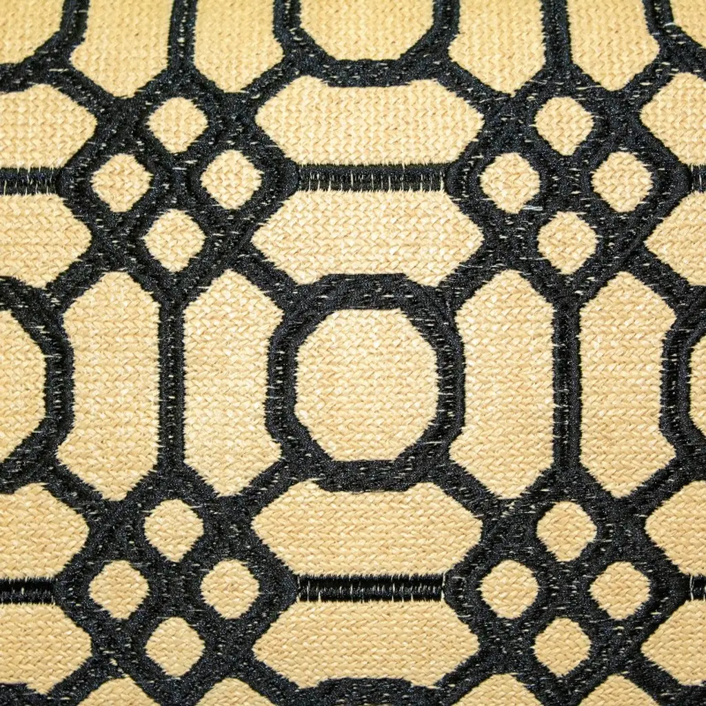 Embroidered Geometric Raffia Rectangular Indoor/outdoor Throw Pillow Black/natural - Edie@home: Polyester Oxford Fabric, Zippered