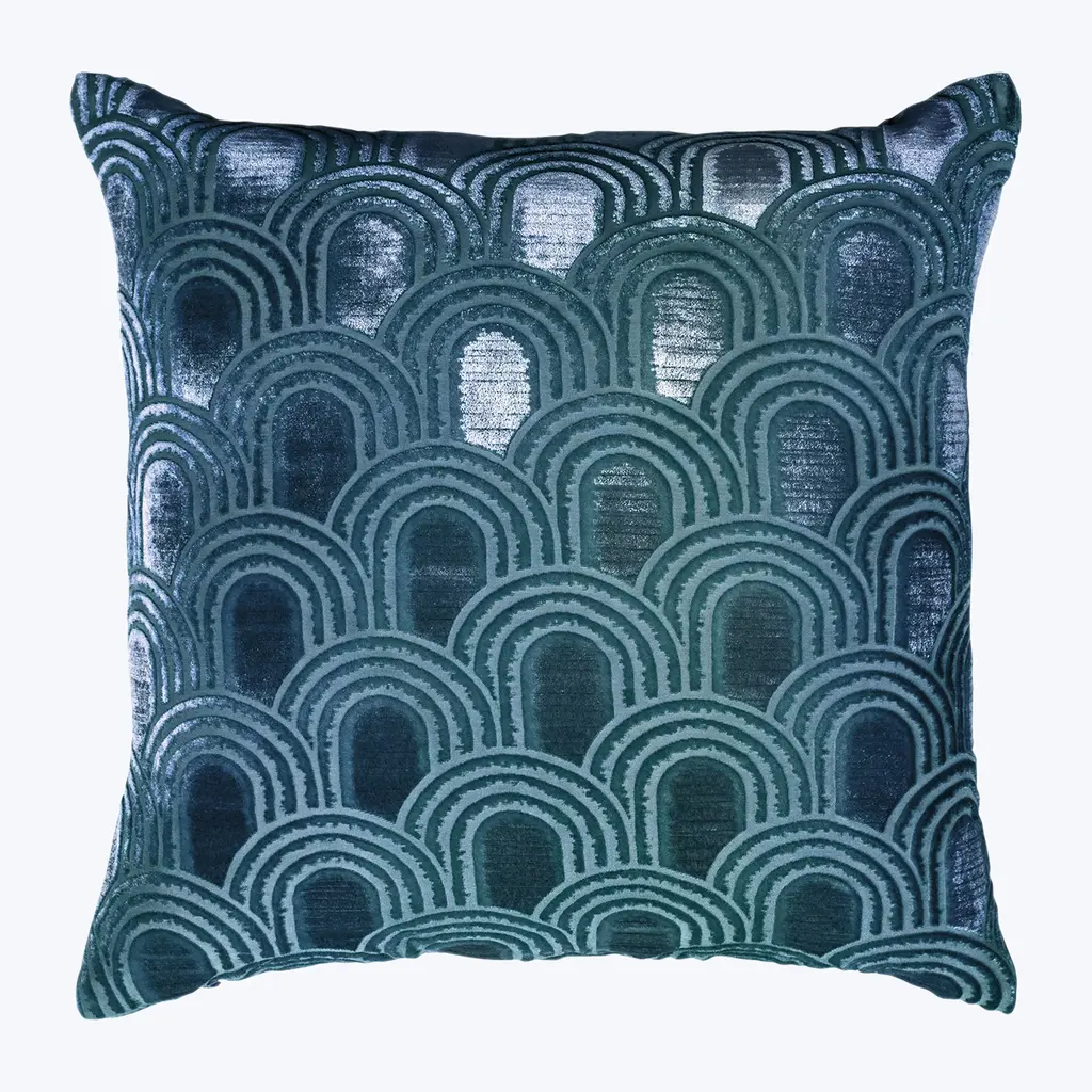 Bring captivating color to your interiors with the Endless Velvet Lumbar Pillow Pacific by Kevin O’Brien Studio. Handcrafted in a beautiful silk blend, this stunning pillow features a deco-inspired design of interlocking arches. An exquisite addition to luxe, moody spaces. Made in Philadelphia by expert textile artisans.