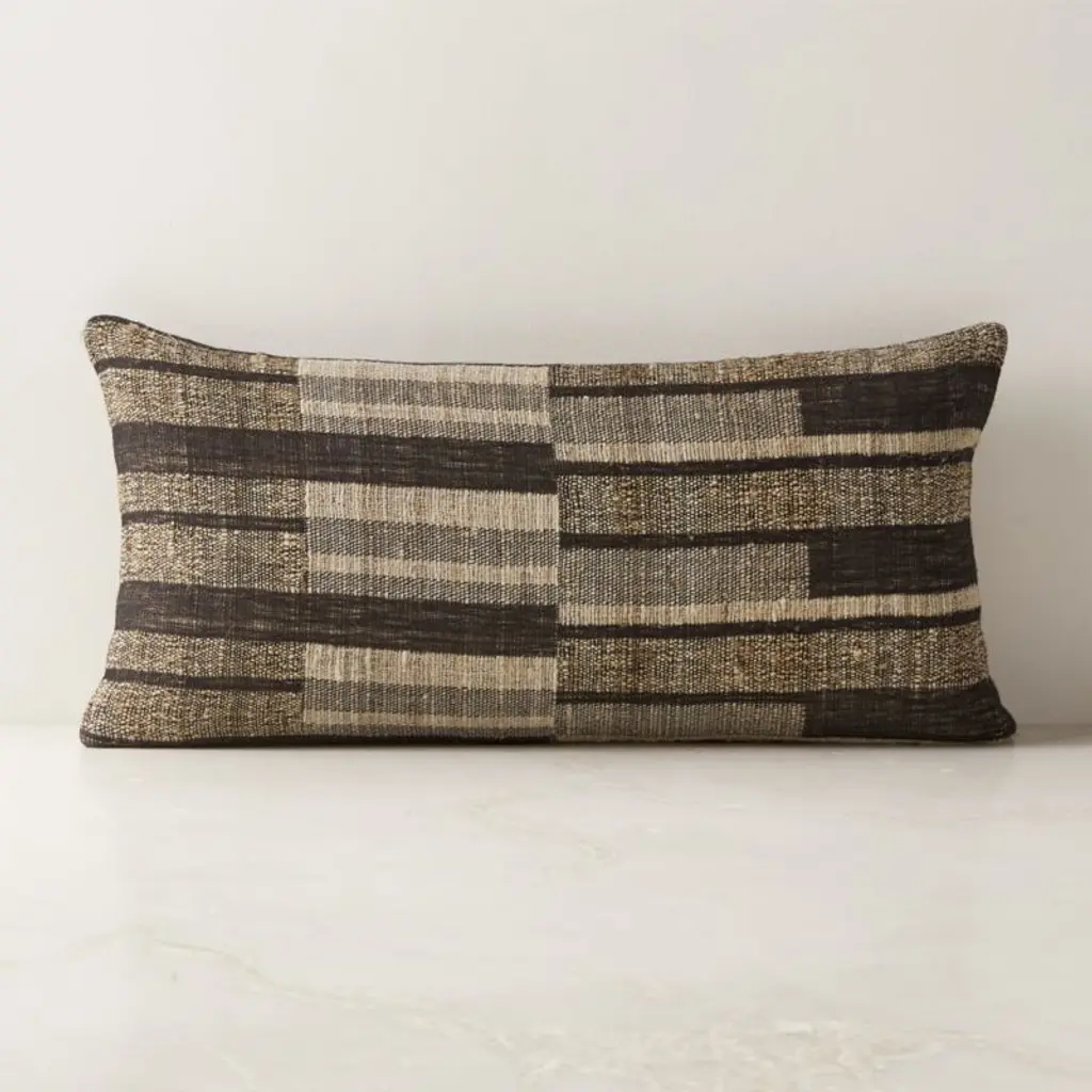 Luxurious and linear, our Etta pillow ties together the other throw pillows in your collection thanks to its muted, versatile palette. Skilled artisans weave the high-end blend of wool and silk by hand to create dynamic dashes, diagonals and stripes. A versatile addition to your cool-weather decor, the pillow balances its sleek, modern pattern with luxe coziness. Our exclusive lumbar pillow includes your choice of a plush feather-down or lofty down-alternative insert.