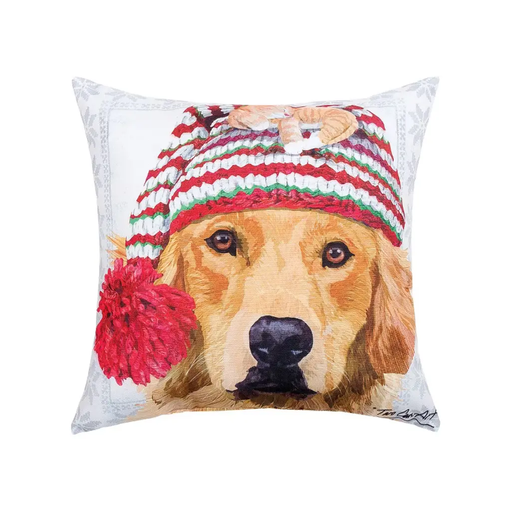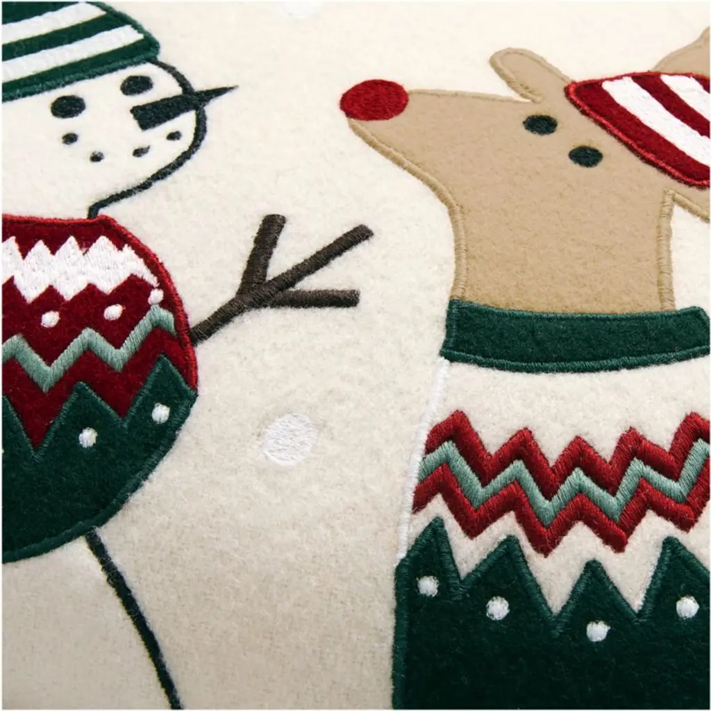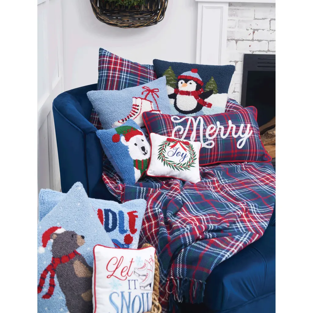 Joan Anderson's delightful winter-themed pillows are back, this time with her signature critters decked in cozy Fair Isle sweaters. Sporting striped caps and knit sweaters in seasonal red and green, a bear, fox and reindeer show off their festive attire against a beige backdrop dotted with white snowflakes. Black piping adds a bit of graphic contrast. Our exclusive lumbar pillow includes your choice of a plush feather-down or lofty down-alternative insert.For more than 30 years, our exclusive whimsical designs by artist Joan Anderson have been collectible favorites that sell out fast.