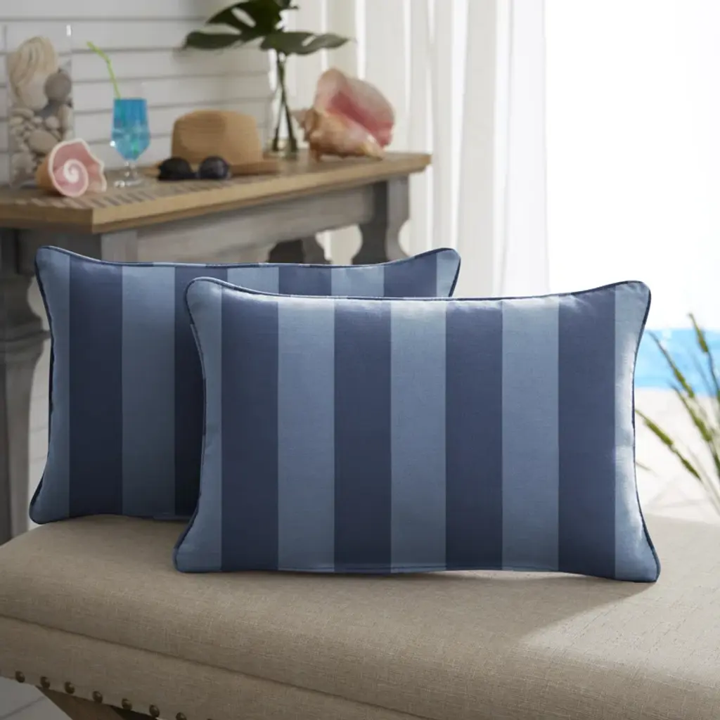 Create a stunning oasis in your very own backyard with the help of this adorable set of lumbar pillows featuring a blue and navy color, Stripe pattern fabric. These pillows will bring fun and freshness to your outdoor space while offering added comfort to help you and your guests feel at home. They feature durable, weather-resistant material and are made in North America to ensure supreme quality you can trust!